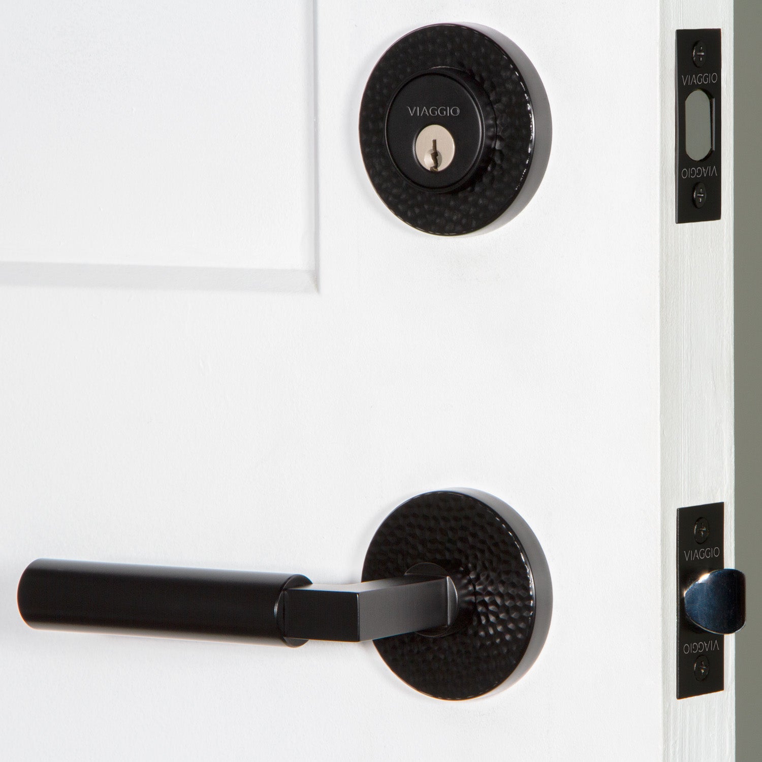 Circolo Hammered Rosette Entry Set with Contempo Lever in Satin Black
