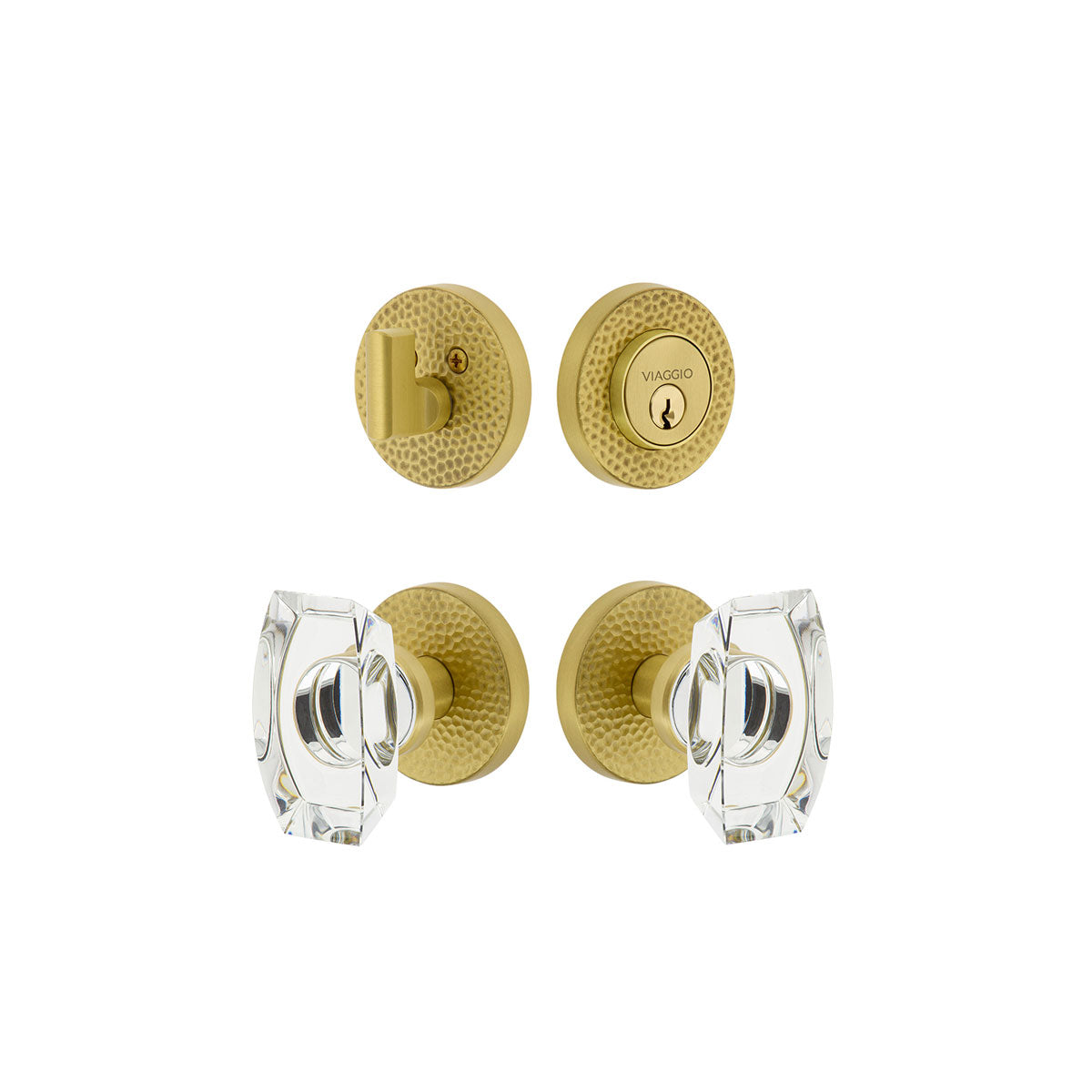Circolo Hammered Rosette Entry Set with Stella Knob in Satin Brass