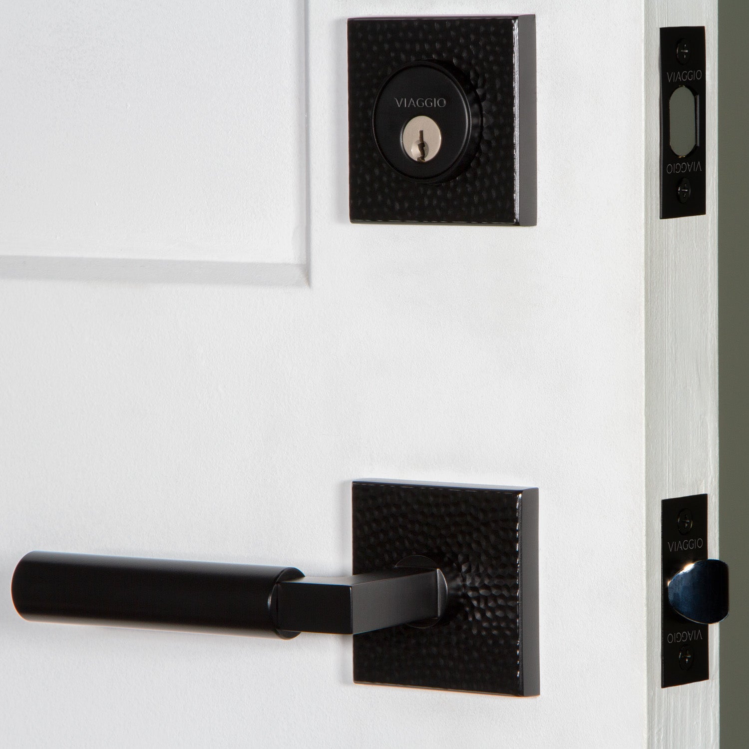Quadrato Hammered Rosette Entry Set with Contempo Lever in Satin Black