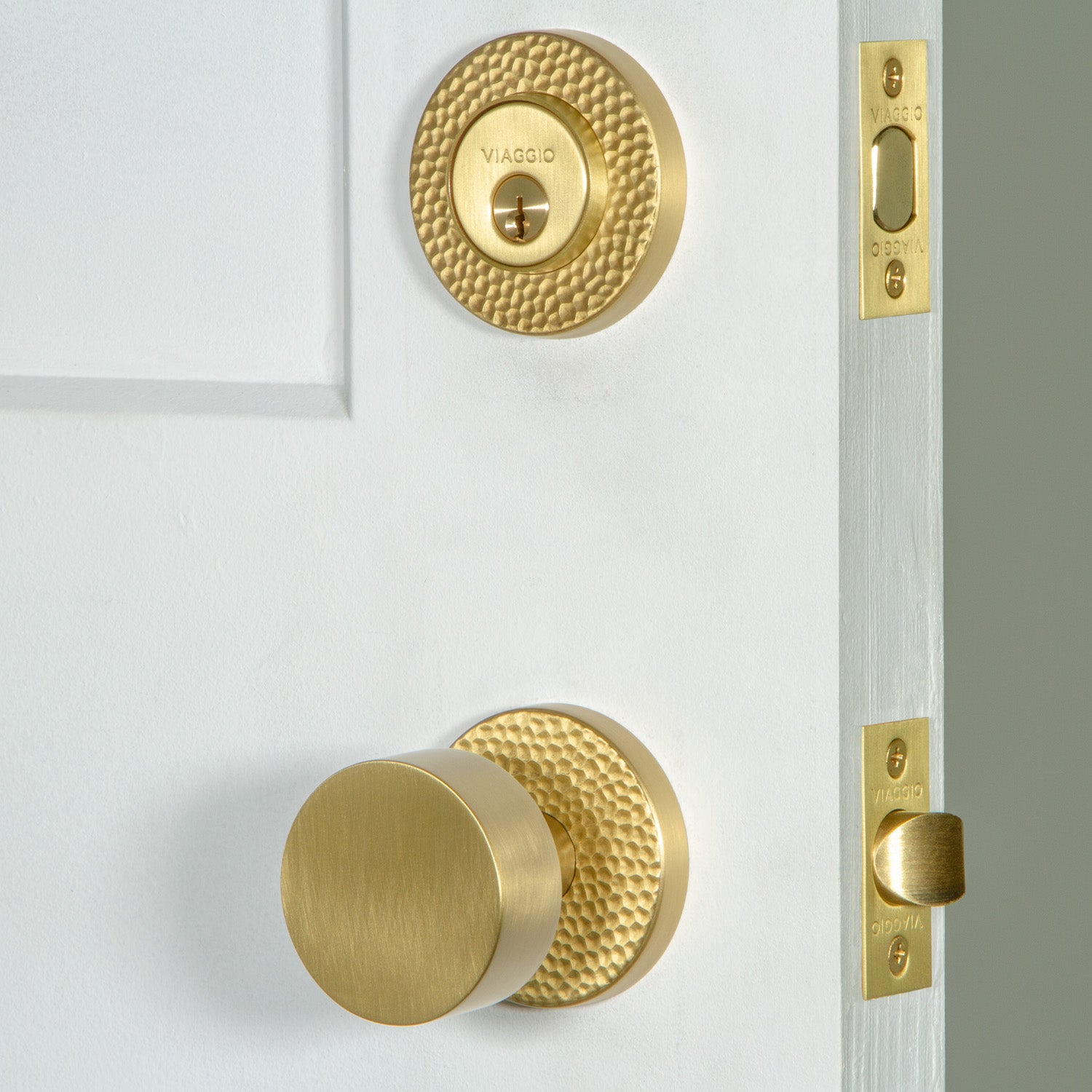 Circolo Hammered Rosette Entry Set with Circolo Knob in Satin Brass