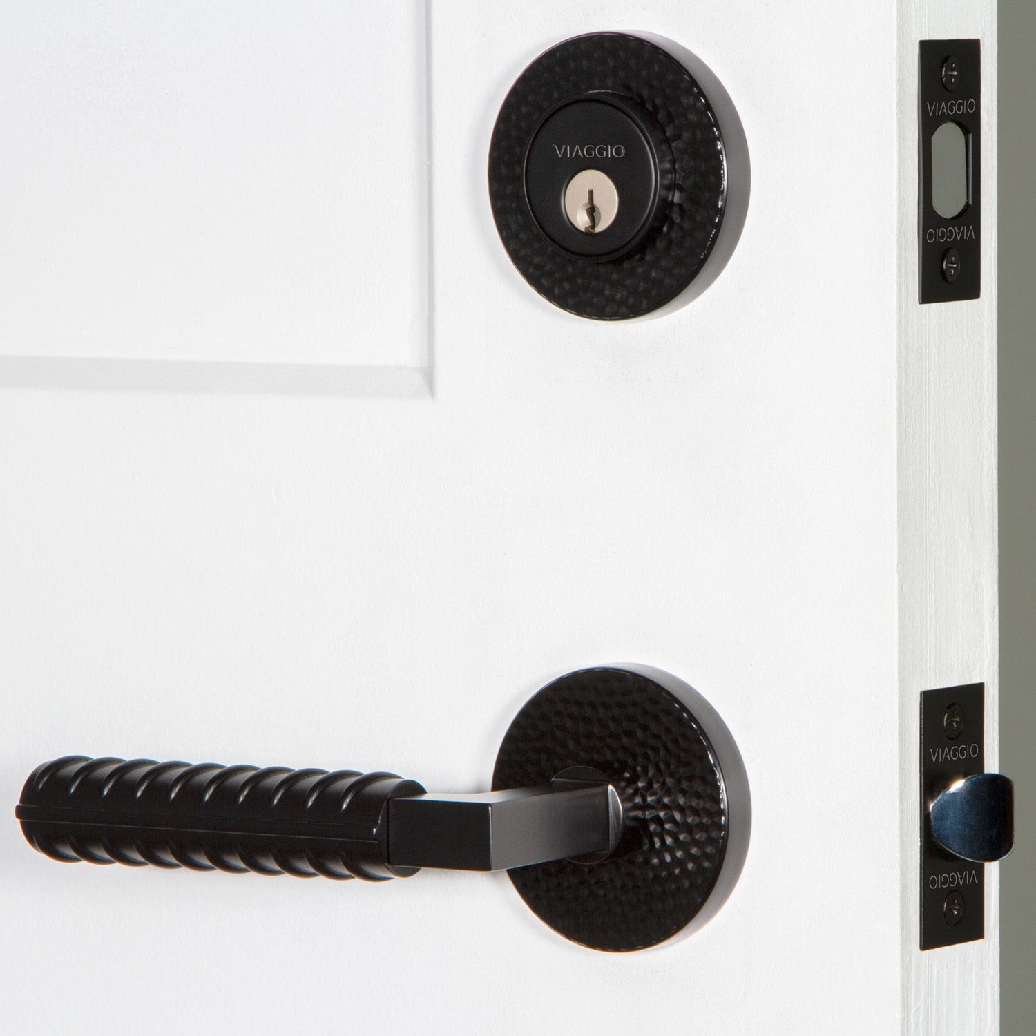 Circolo Hammered Rosette Entry Set with Contempo Rebar Lever in Satin Black