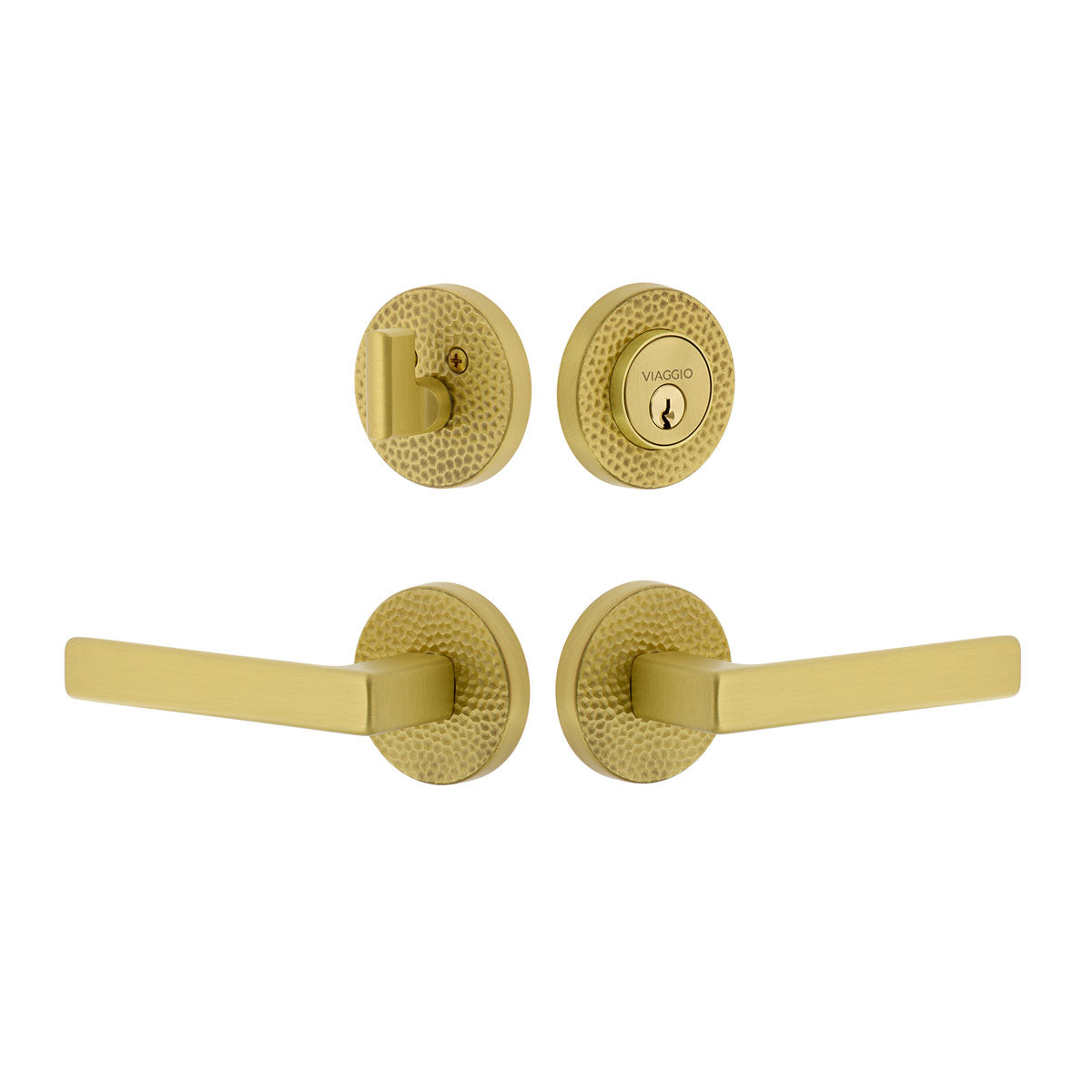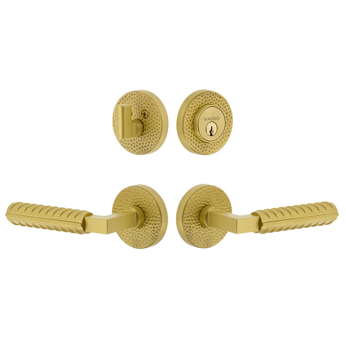 Circolo Hammered Rosette Entry Set with Lusso Lever in Satin Brass