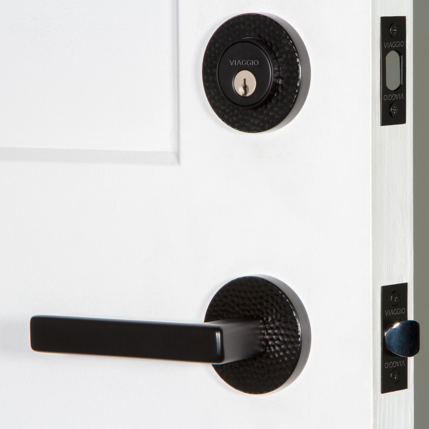 Circolo Hammered Rosette Entry Set with Lusso Lever in Satin Black