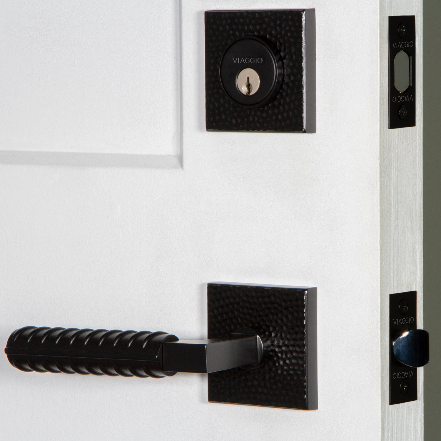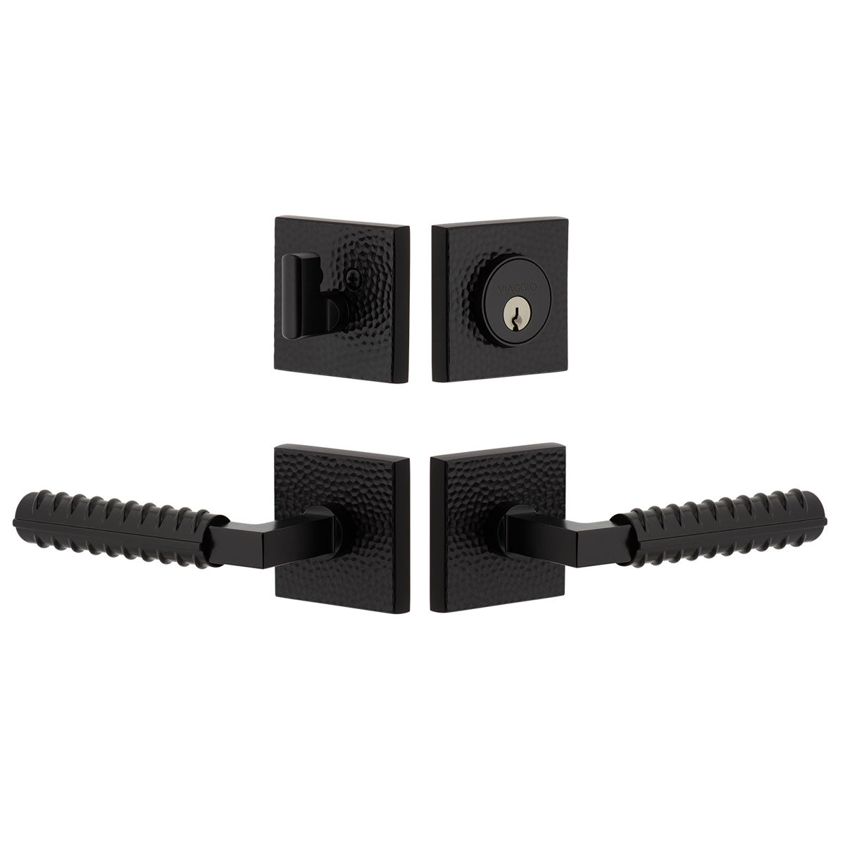Quadrato Hammered Rosette Entry Set with Contempo Rebar Lever in Satin Black