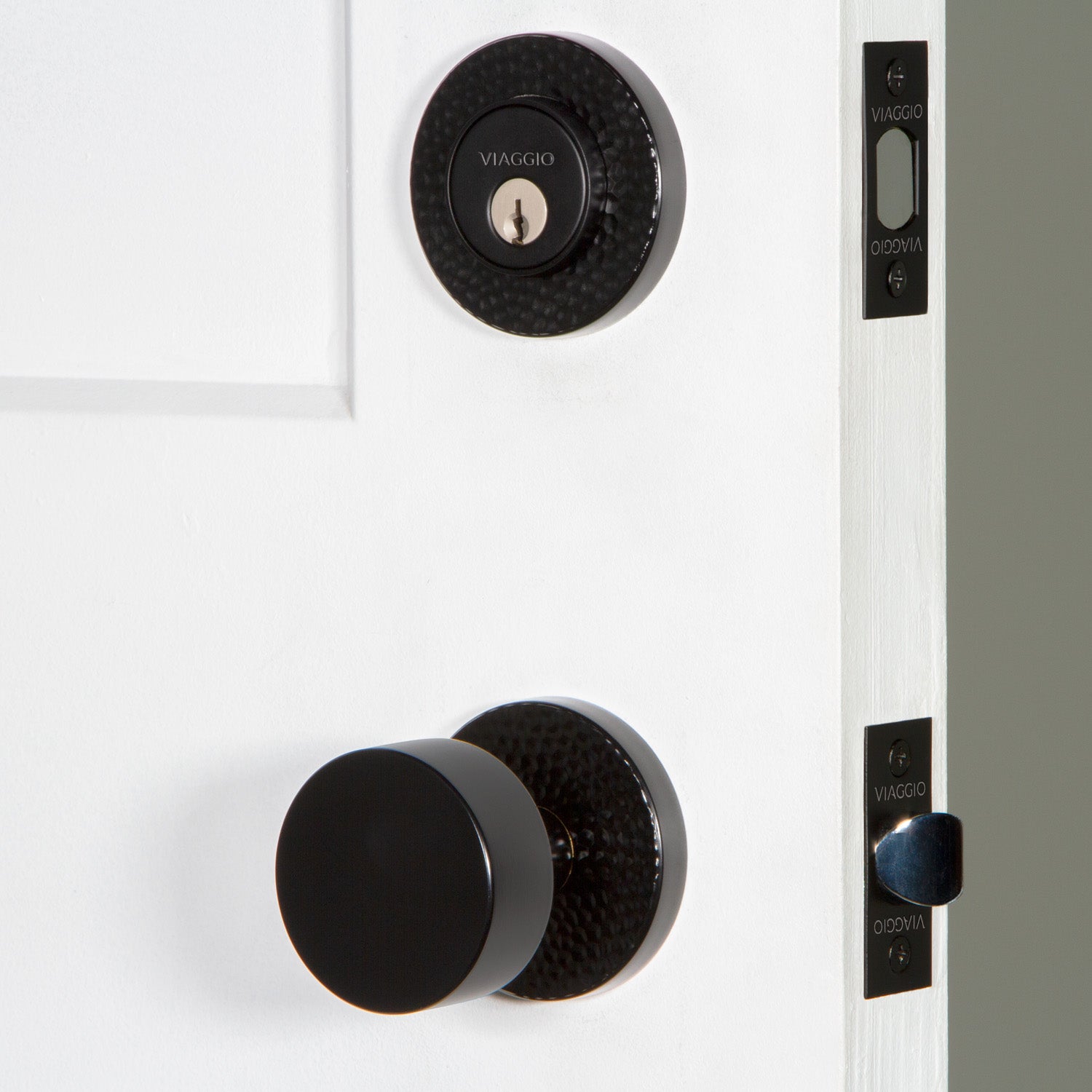 Circolo Hammered Rosette Entry Set with Circolo Knob in Satin Black