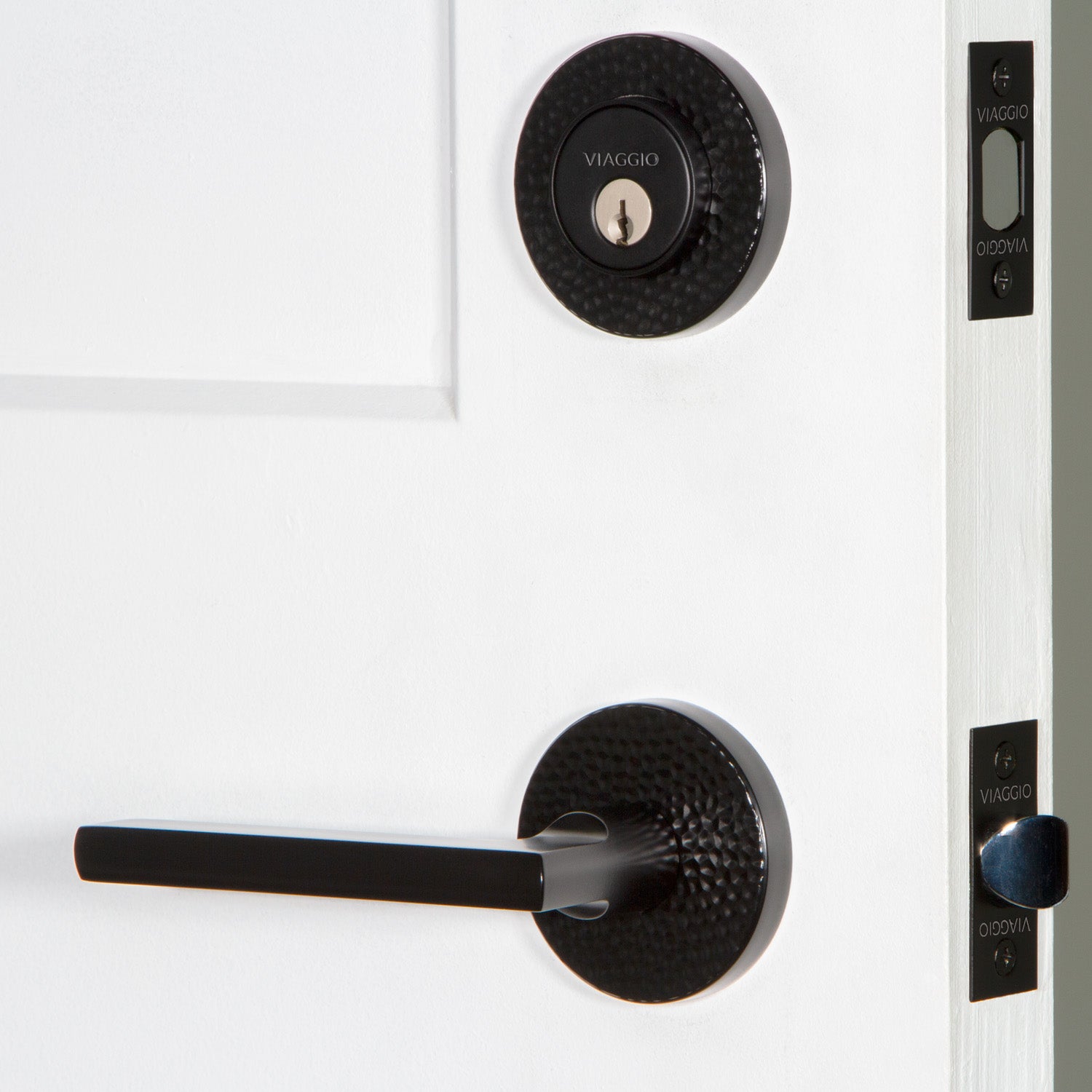 Circolo Hammered Rosette Entry Set with Milano Lever in Satin Black