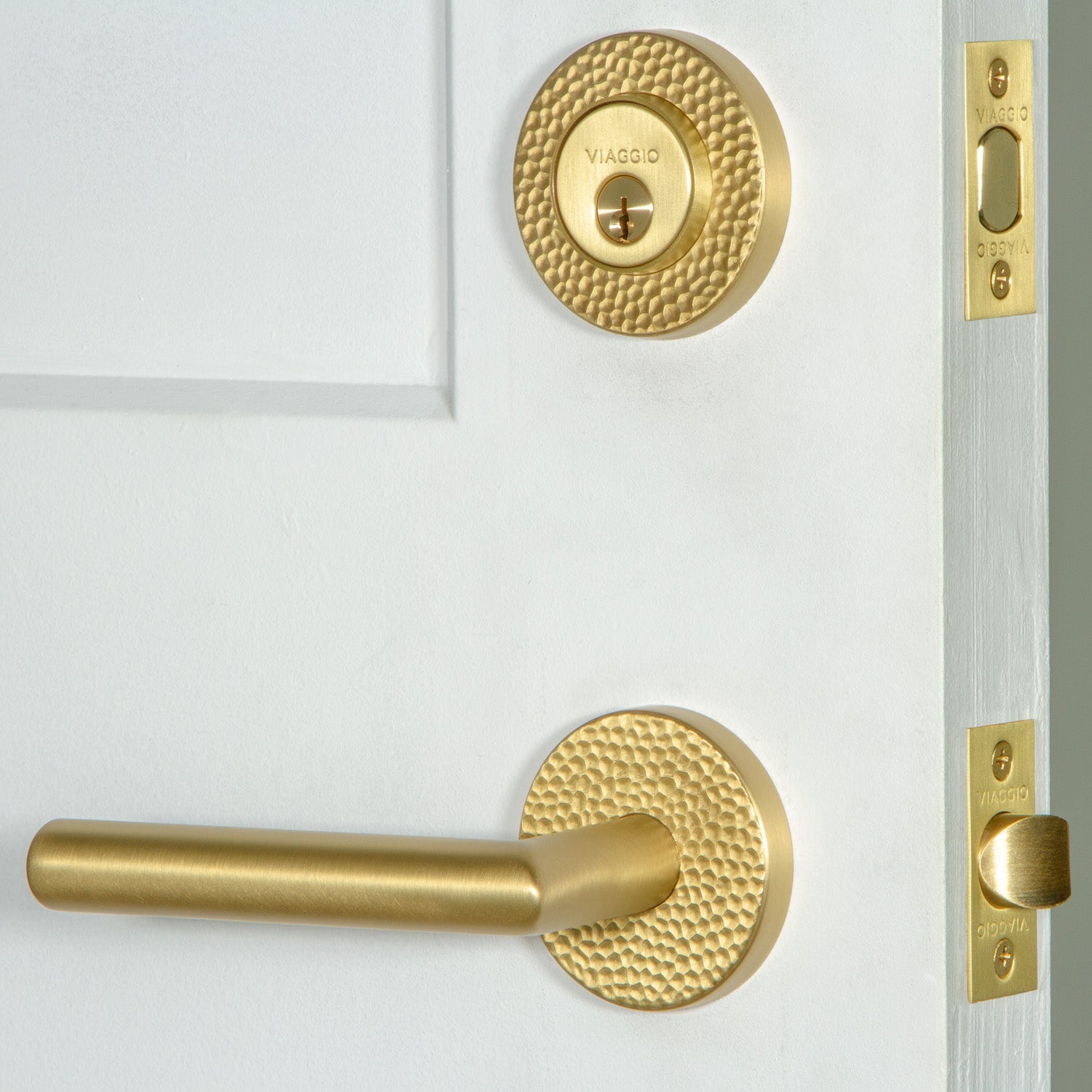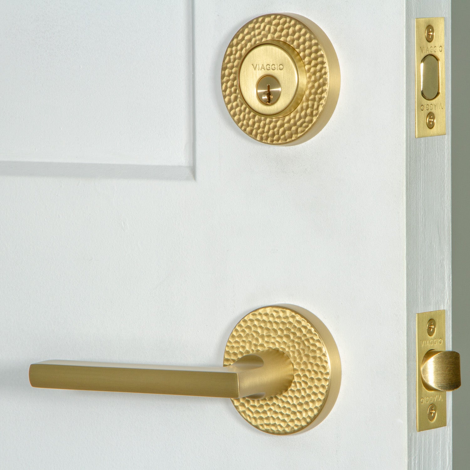 Circolo Hammered Rosette Entry Set with Moderno Lever in Satin Brass