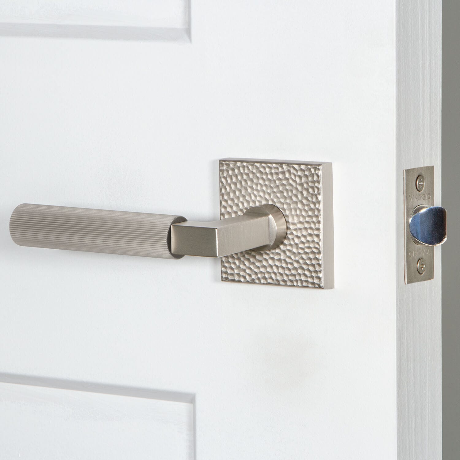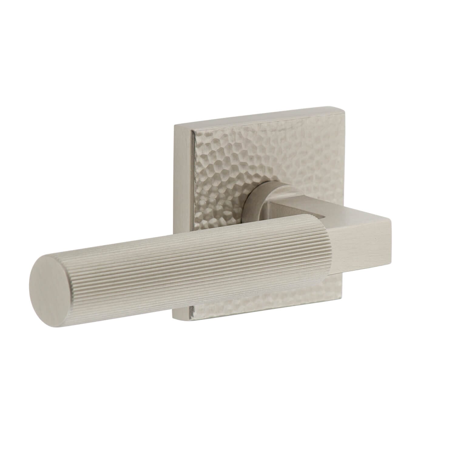 Quadrato Hammered Rosette with Contempo Fluted Lever in Satin Nickel