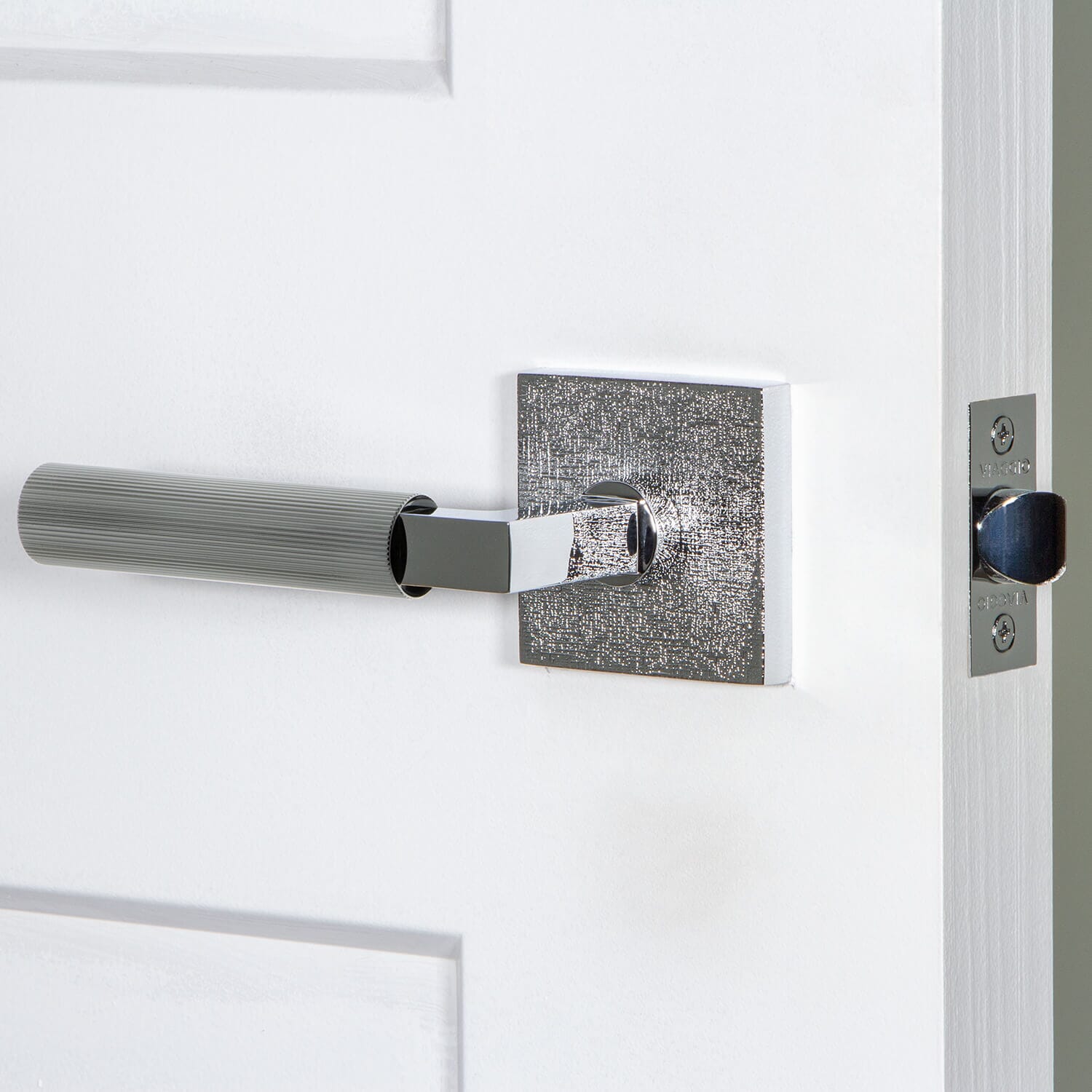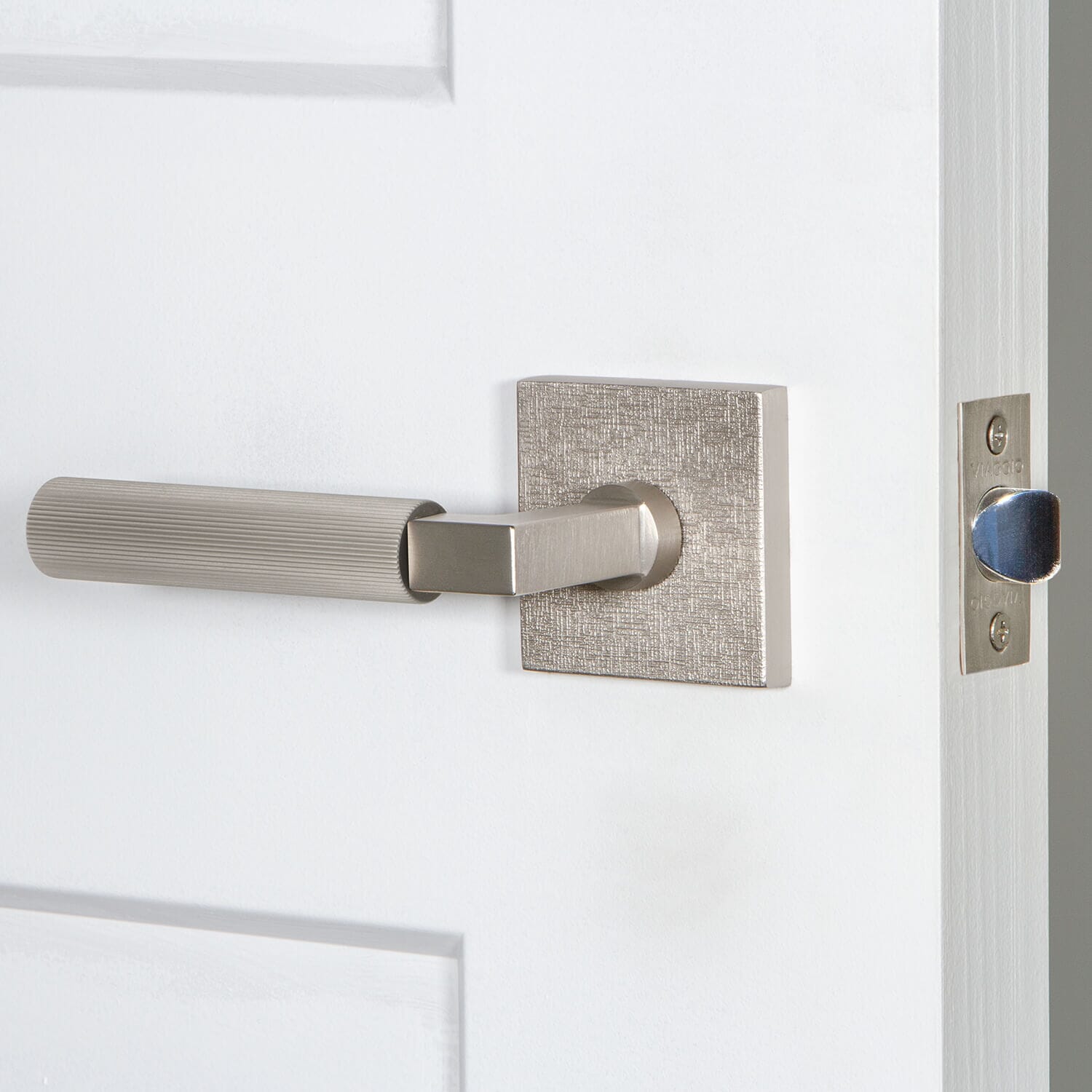 Quadrato Linen Rosette with Contempo Fluted Lever in Satin Nickel