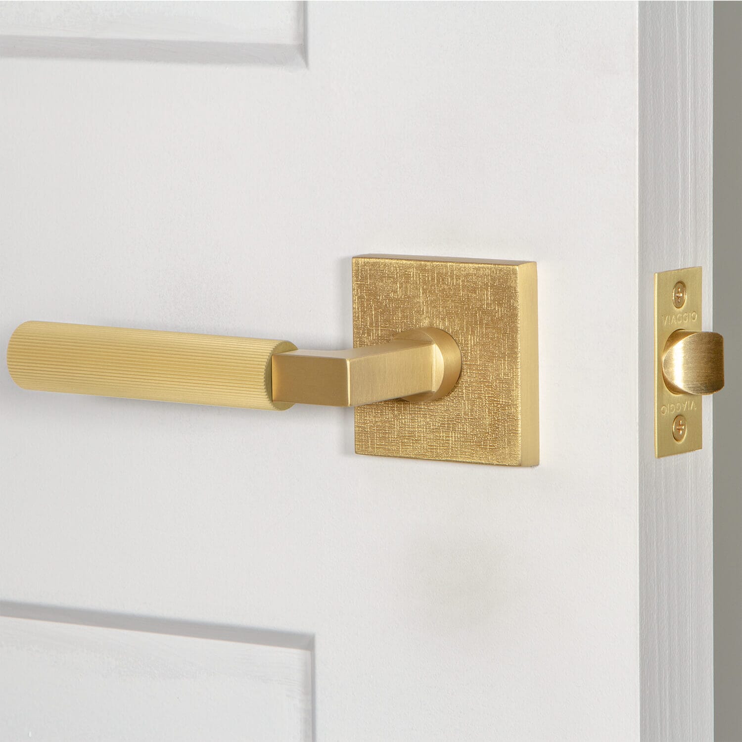 Quadrato Linen Rosette with Contempo Fluted Lever in Satin Brass