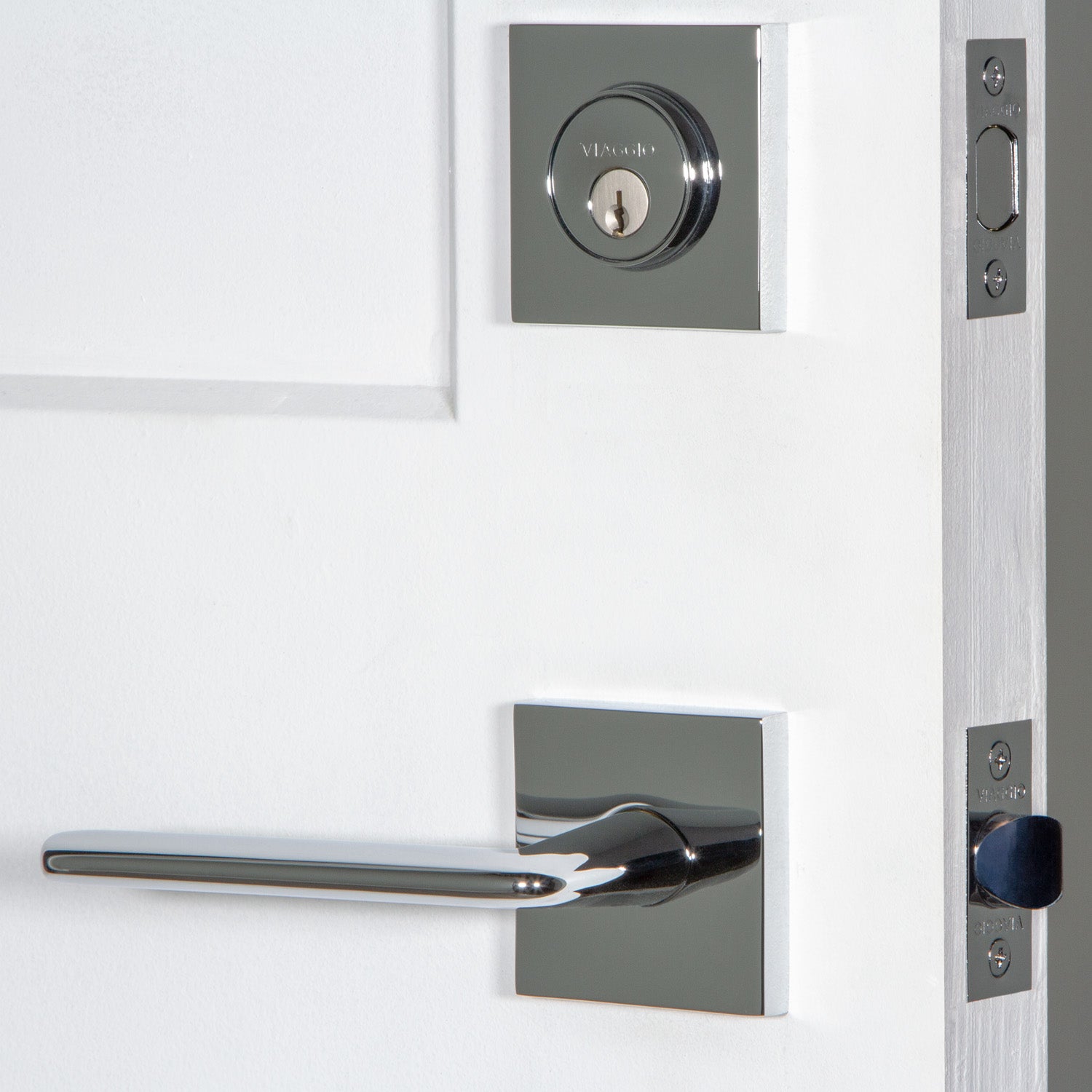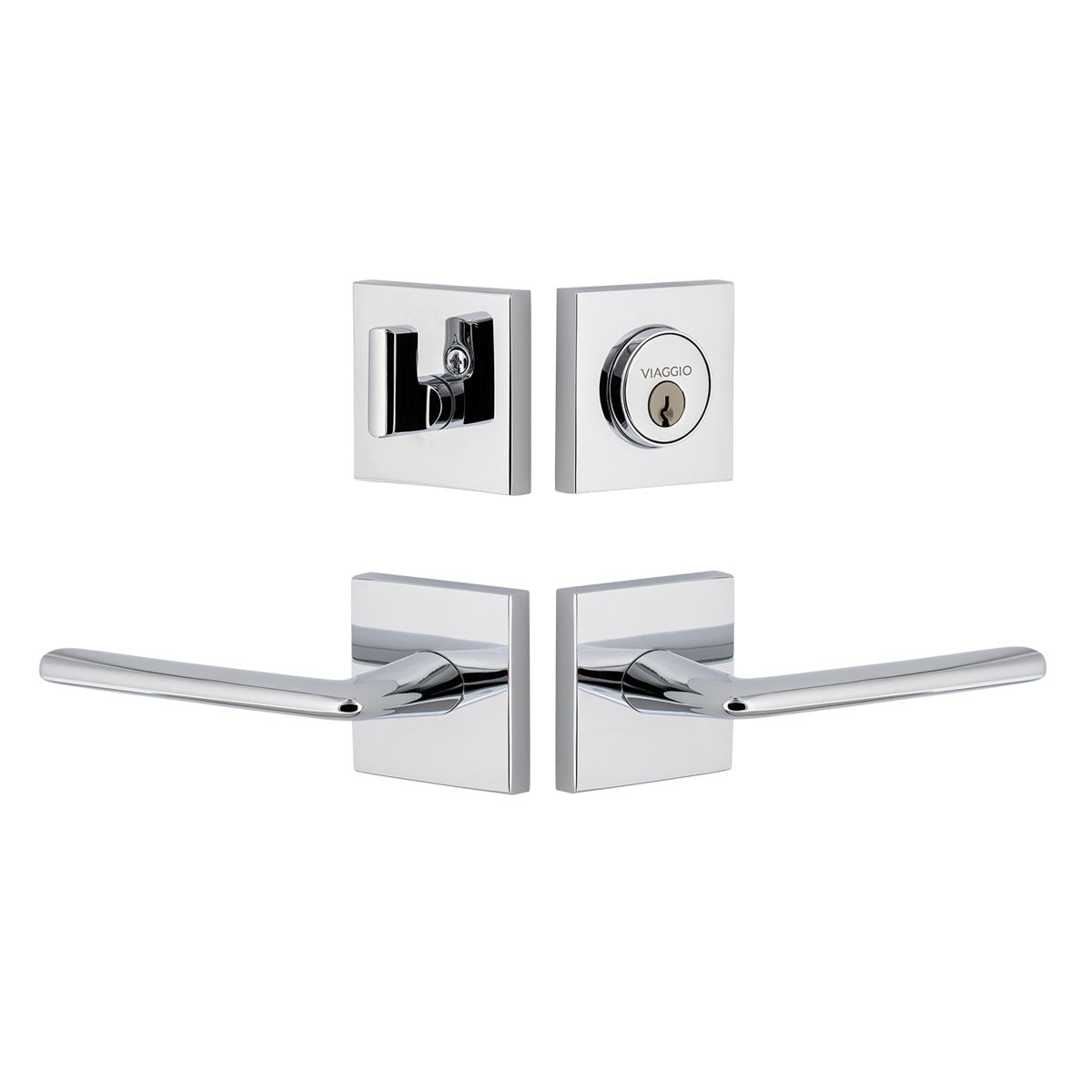Quadrato Rosette Entry Set with Brezza Lever in Bright Chrome