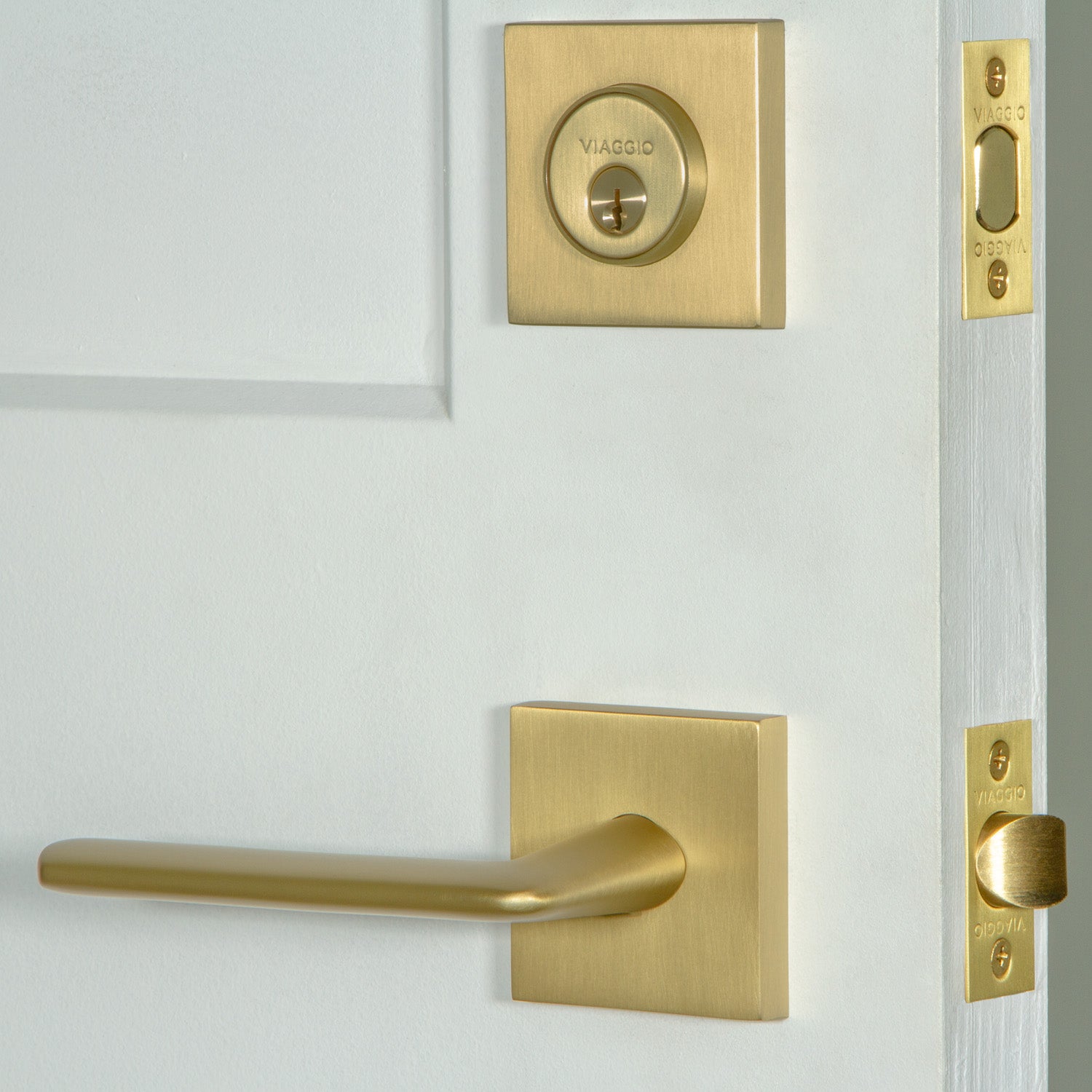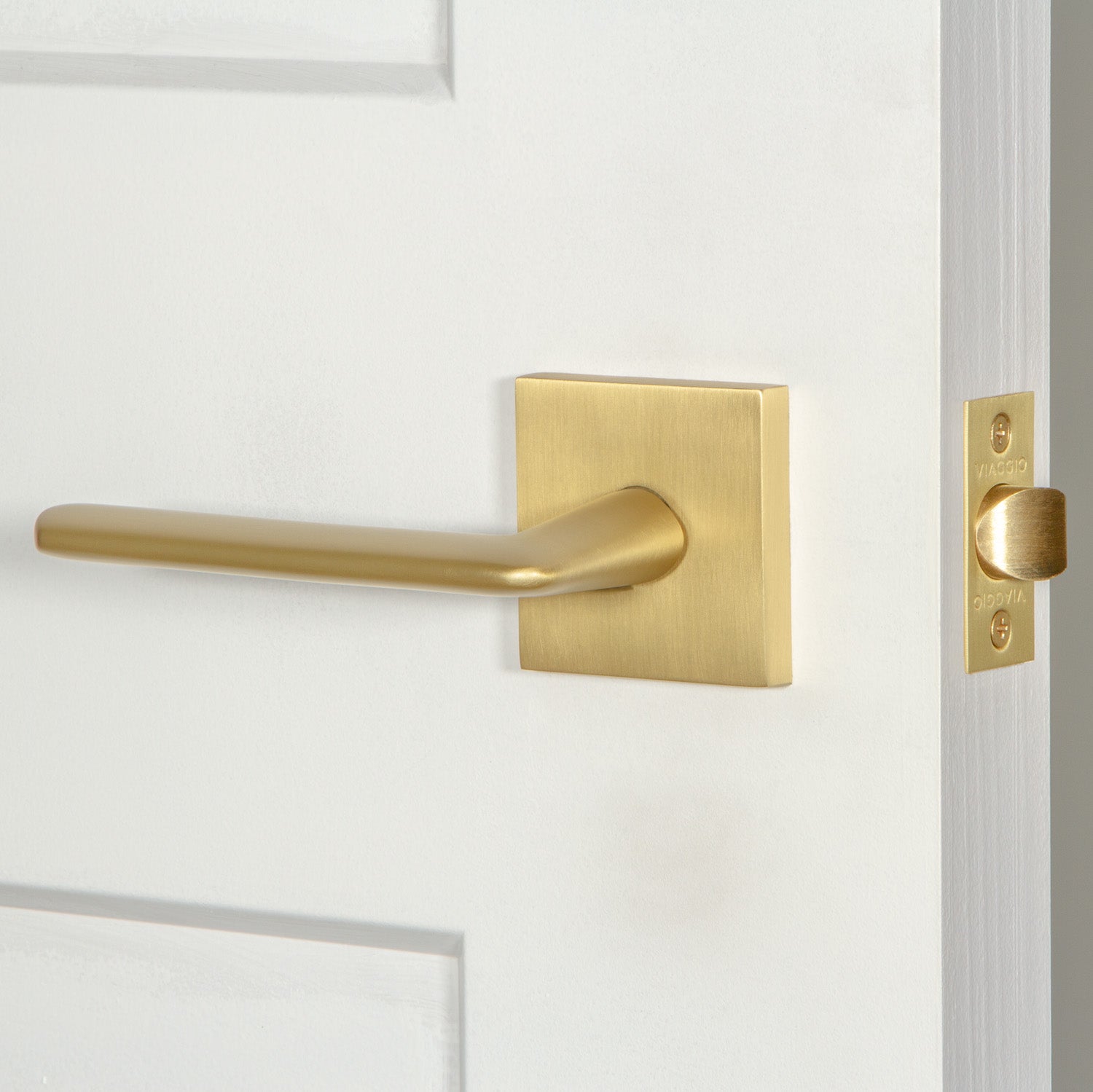 Quadrato Rosette Entry Set with Brezza Lever in Satin Brass