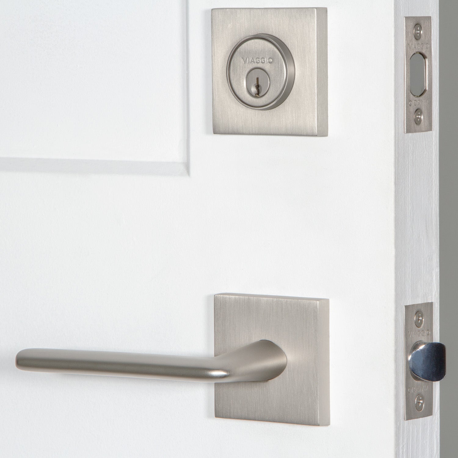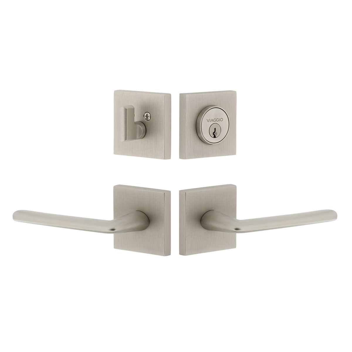 Quadrato Rosette Entry Set with Brezza Lever in Satin Nickel