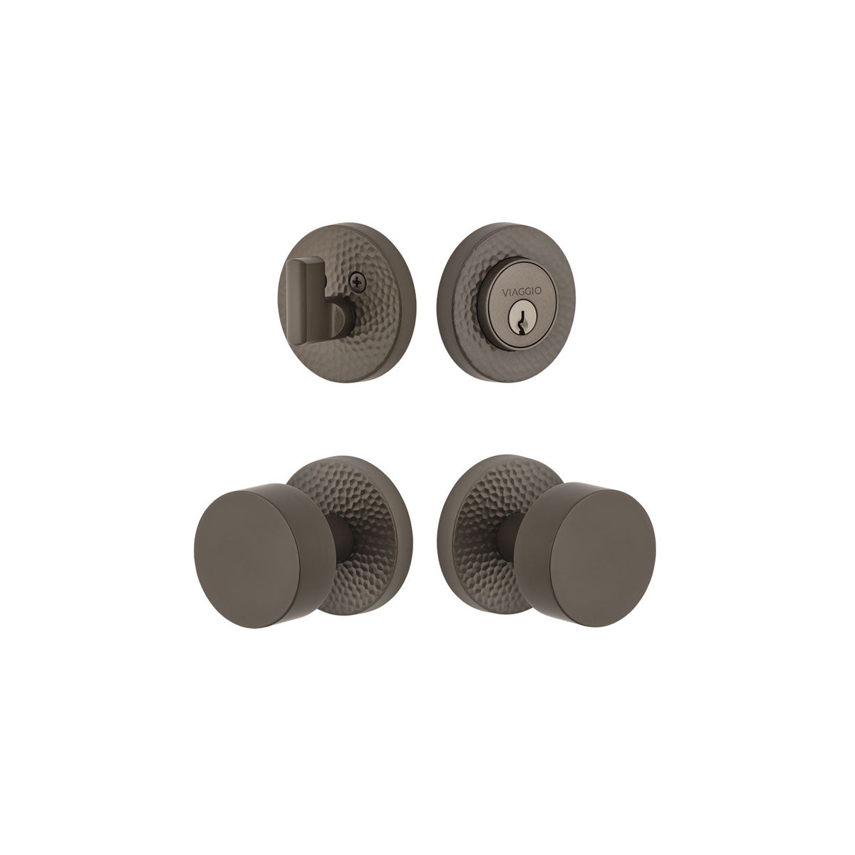 Circolo Hammered Rosette Entry Set with Circolo Knob in Titanium Gray