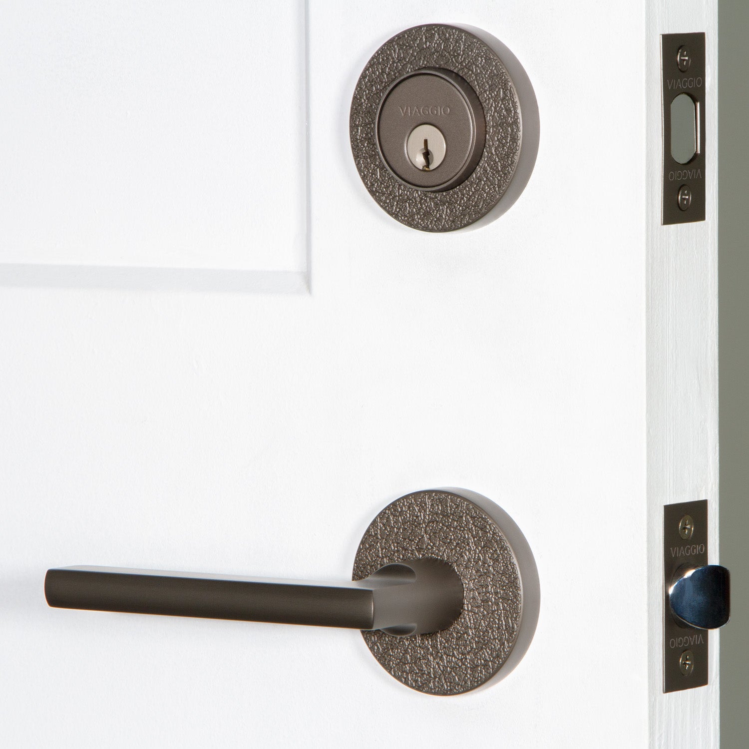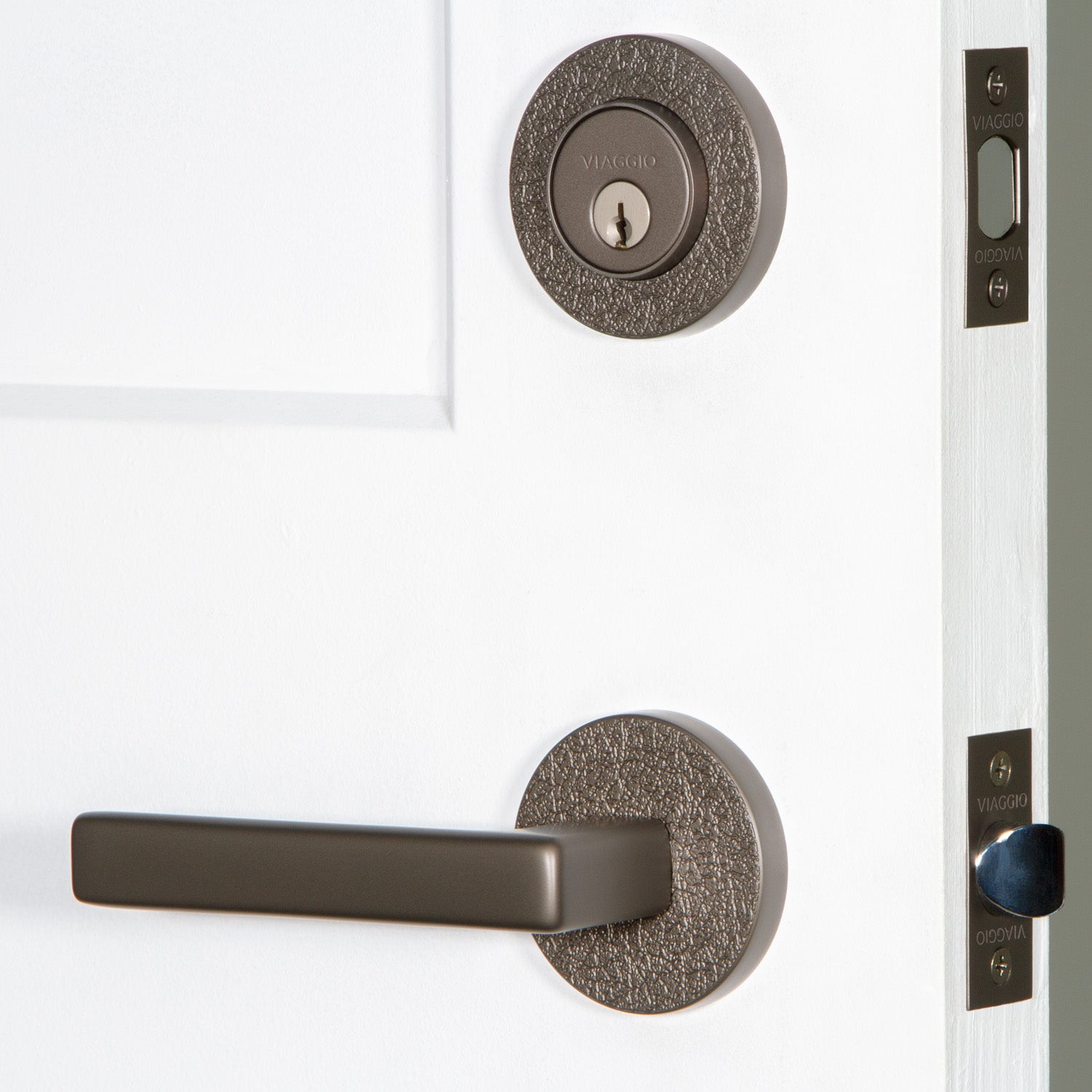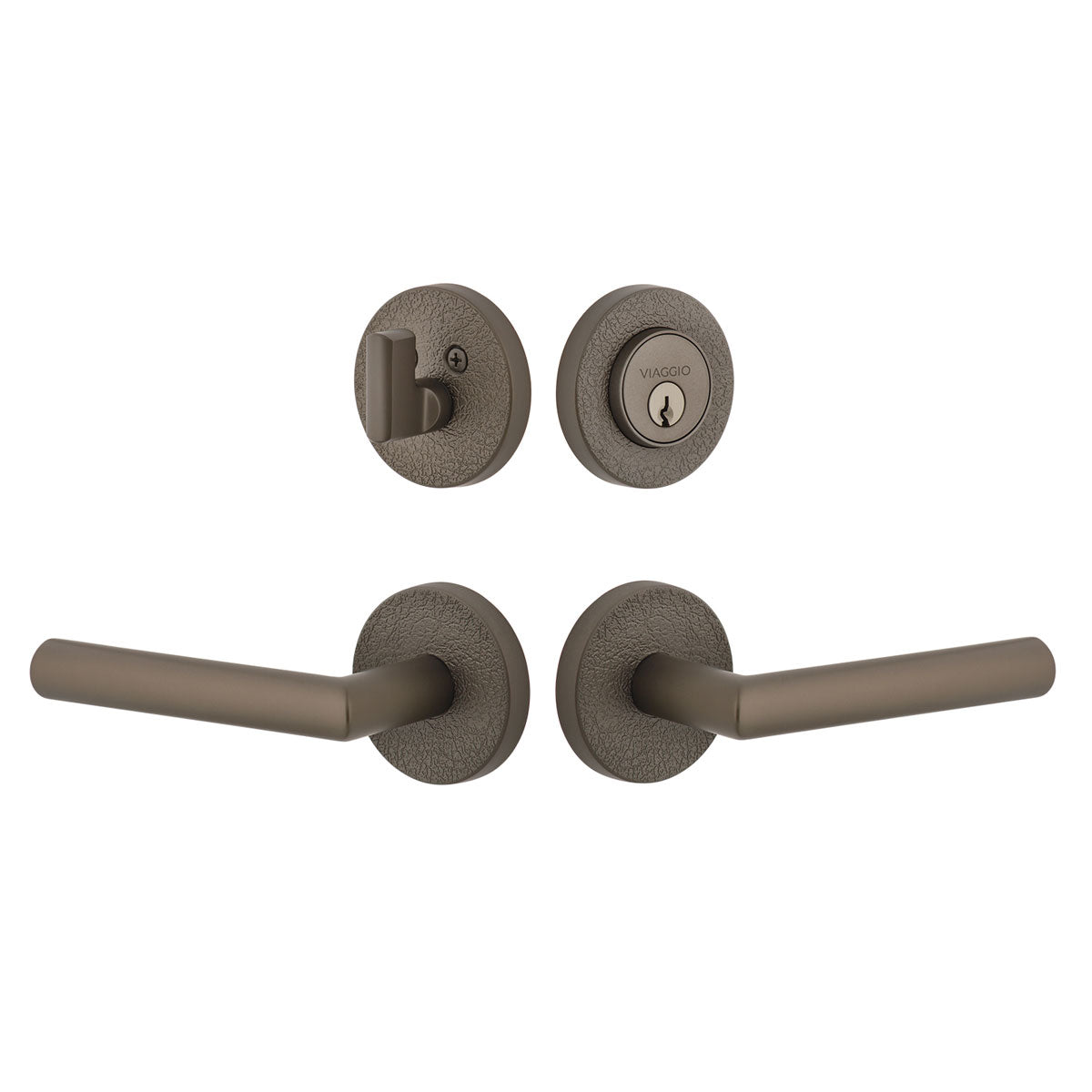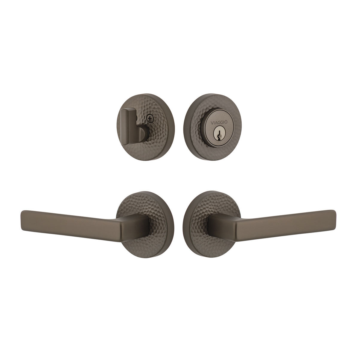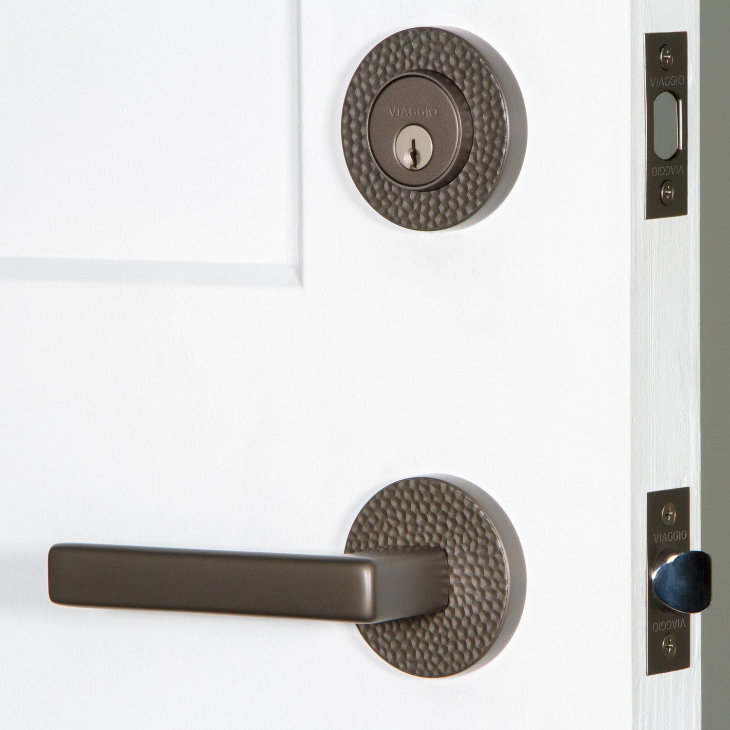 Circolo Hammered Rosette Entry Set with Moderno Lever in Titanium Gray