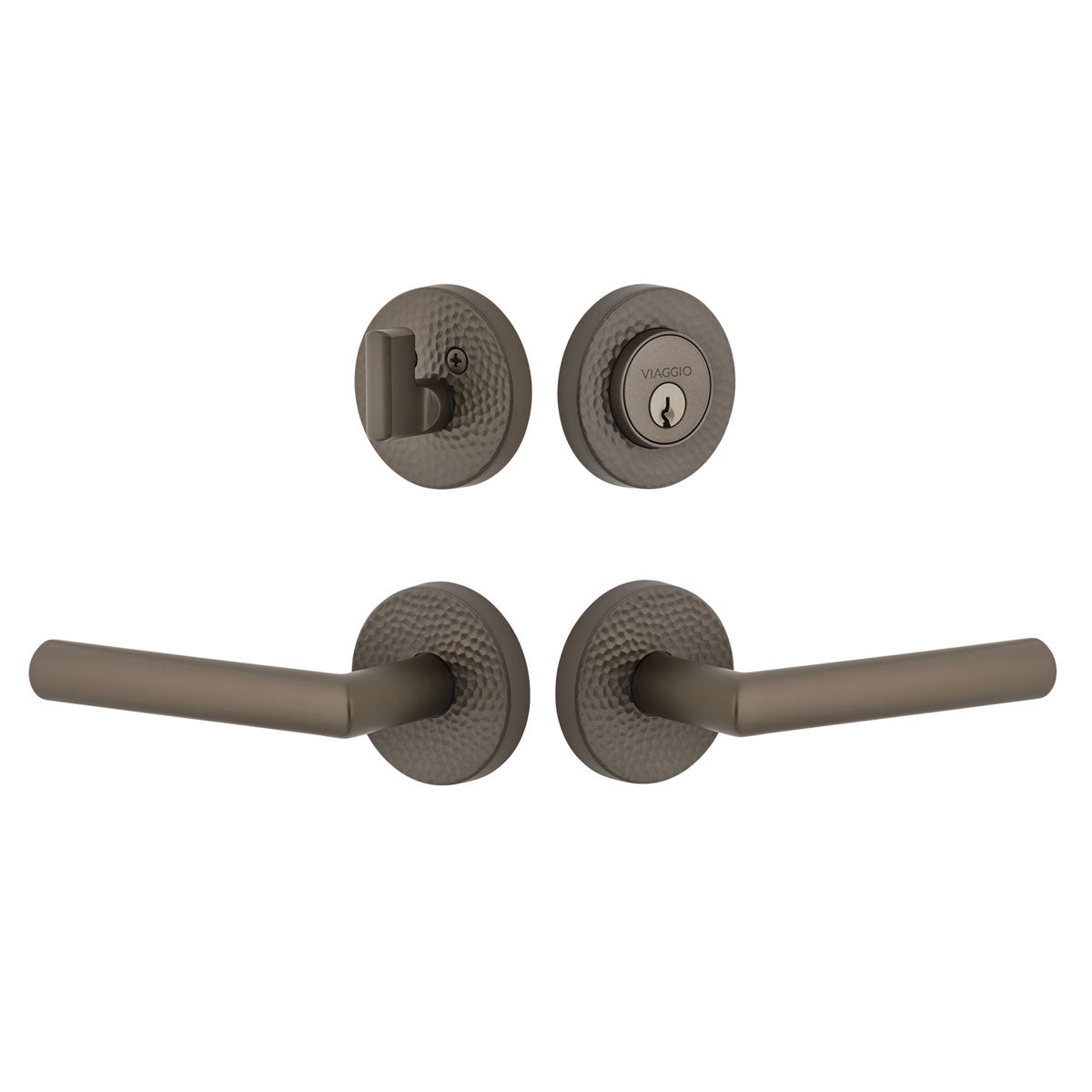 Circolo Hammered Rosette Entry Set with Lusso Lever in Titanium Gray