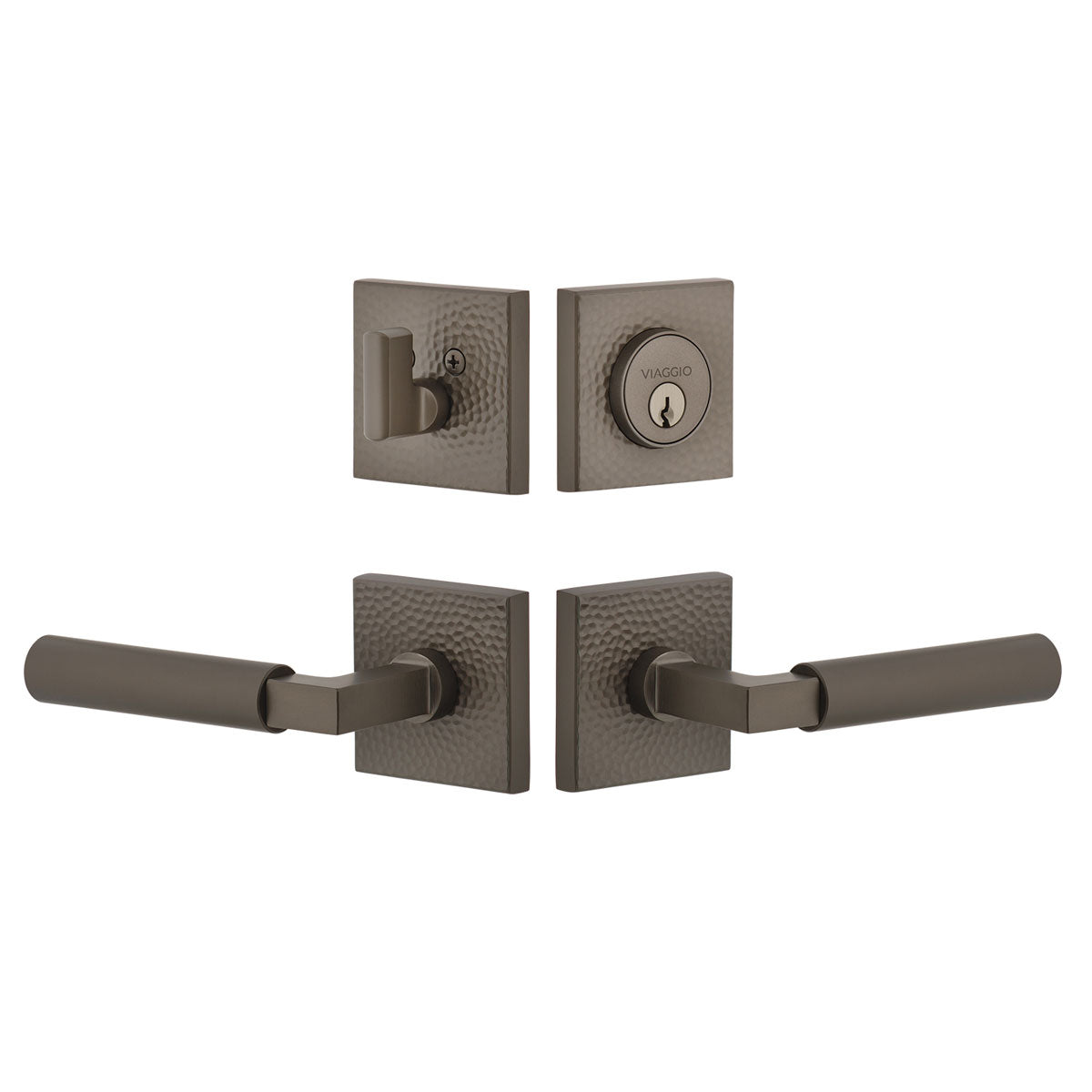 Quadrato Hammered Rosette Entry Set with Contempo Lever in Titanium Gray