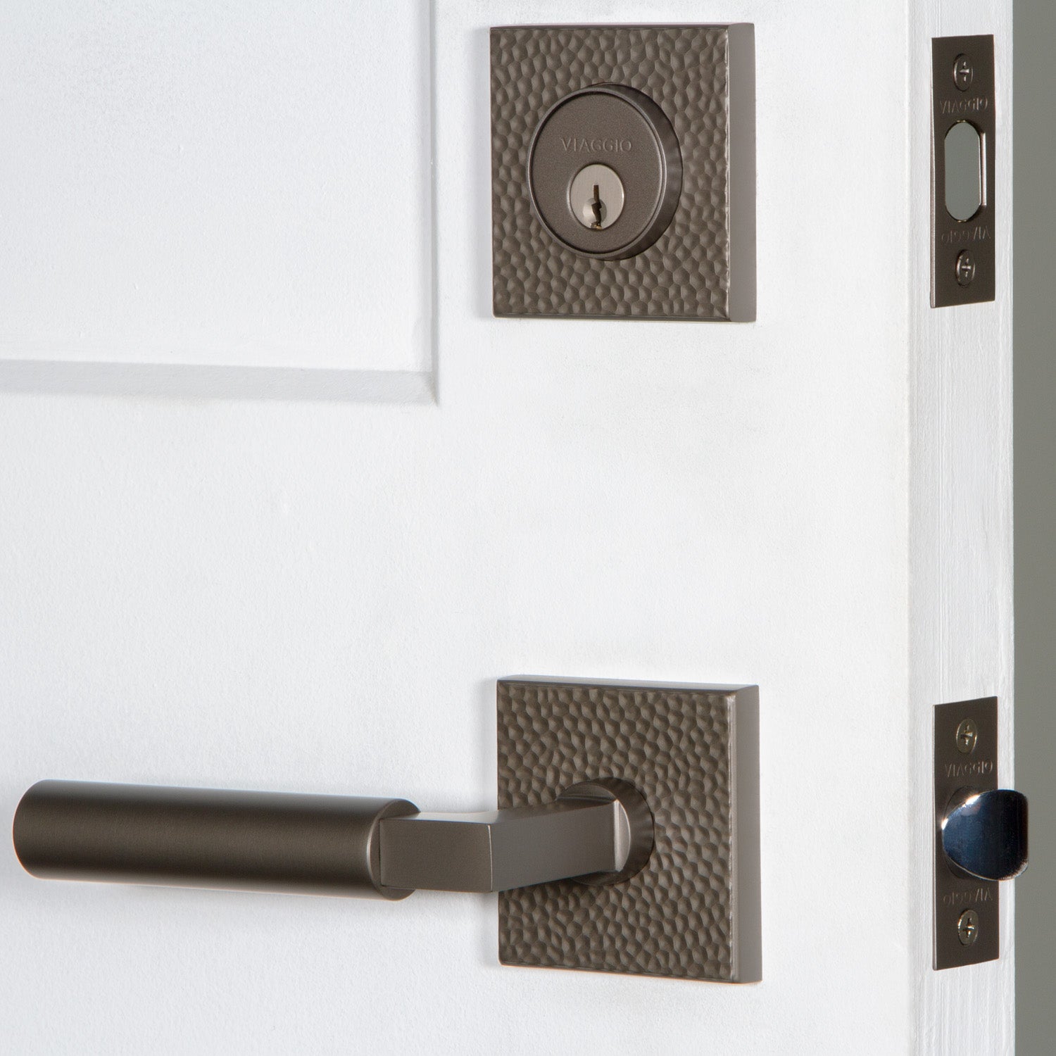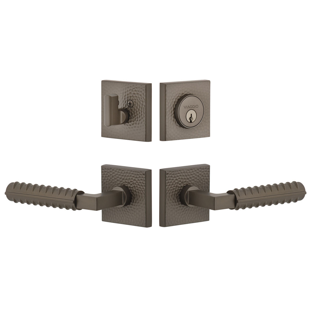 Quadrato Hammered Rosette Entry Set with Contempo Rebar Lever in Titanium Gray