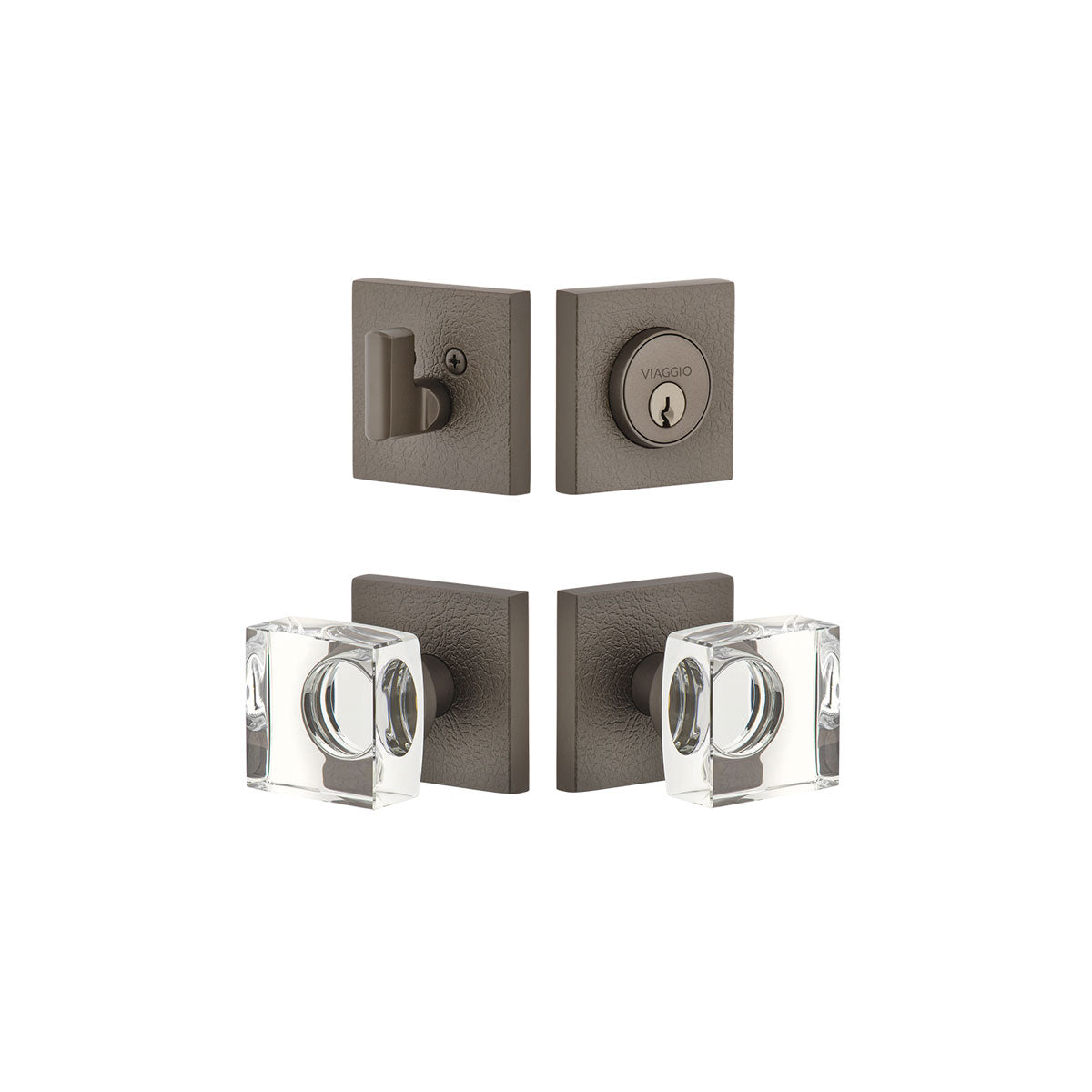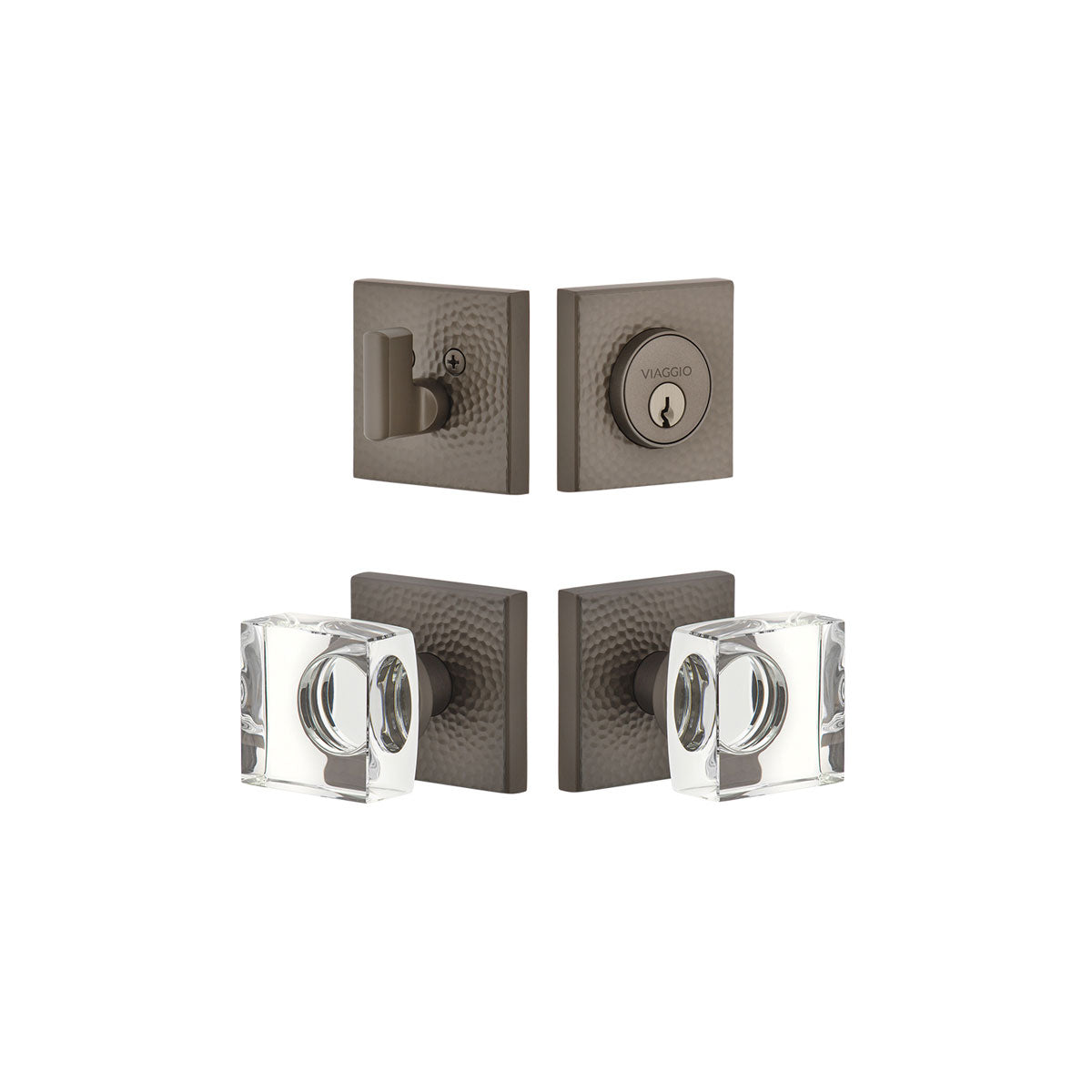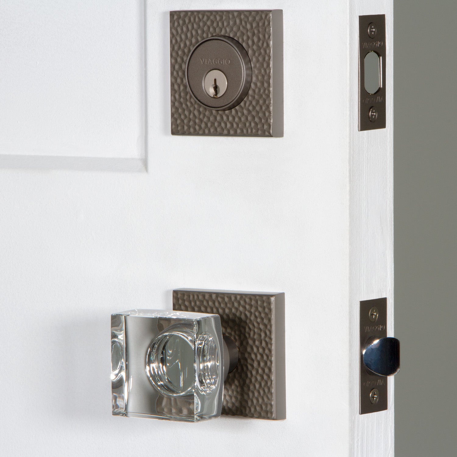 Quadrato Hammered Rosette Entry Set with Quadrato Crystal Knob in Titanium Gray