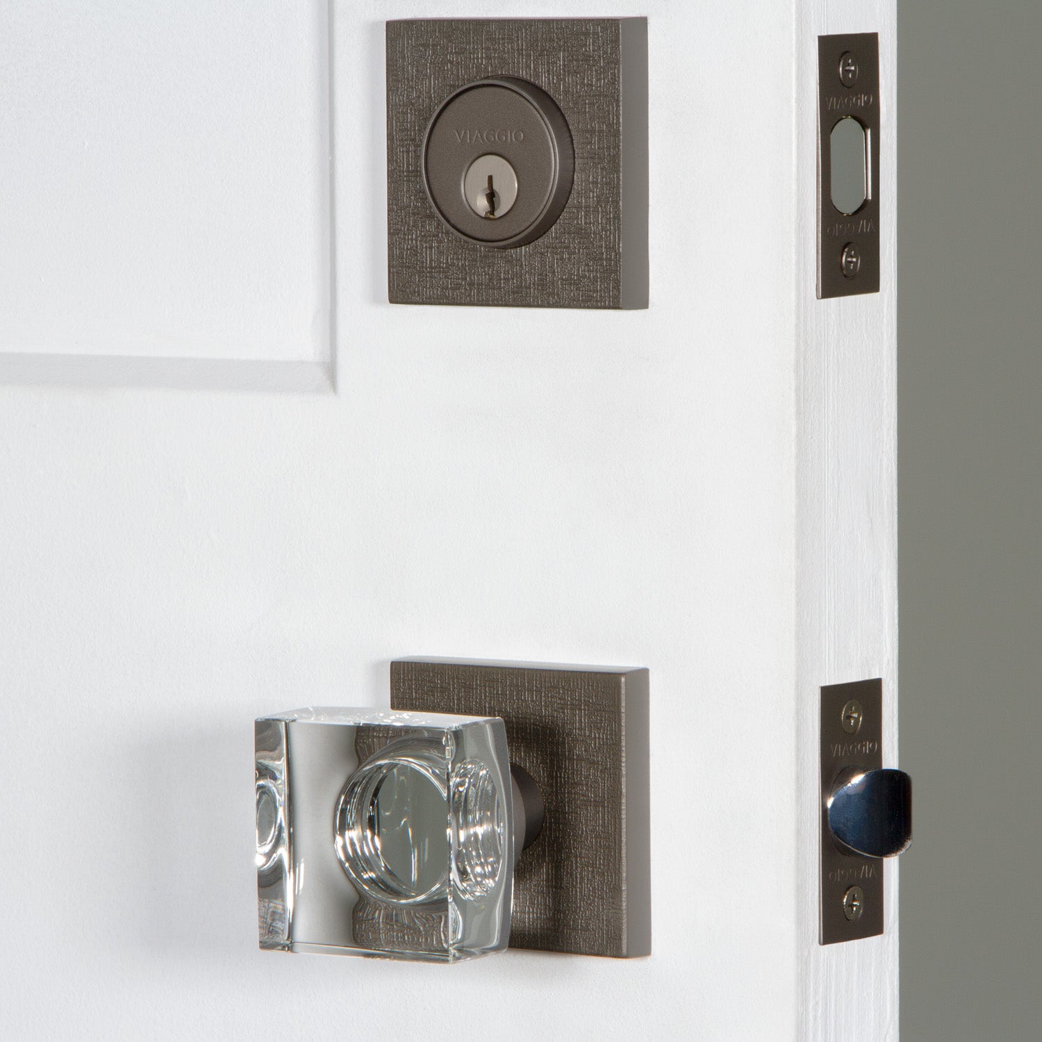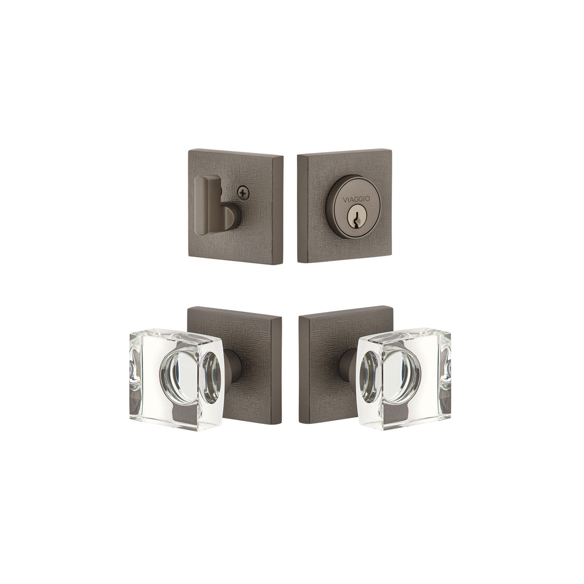 Quadrato Linen Rosette Entry Set with Quadrato Crystal Knob in Titanium Gray