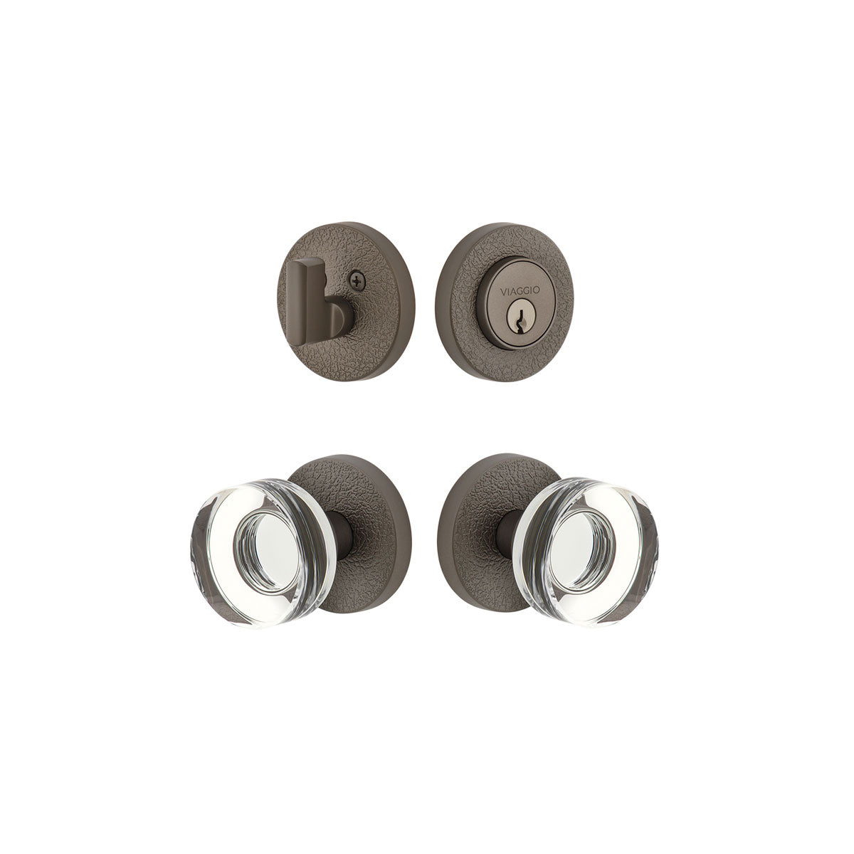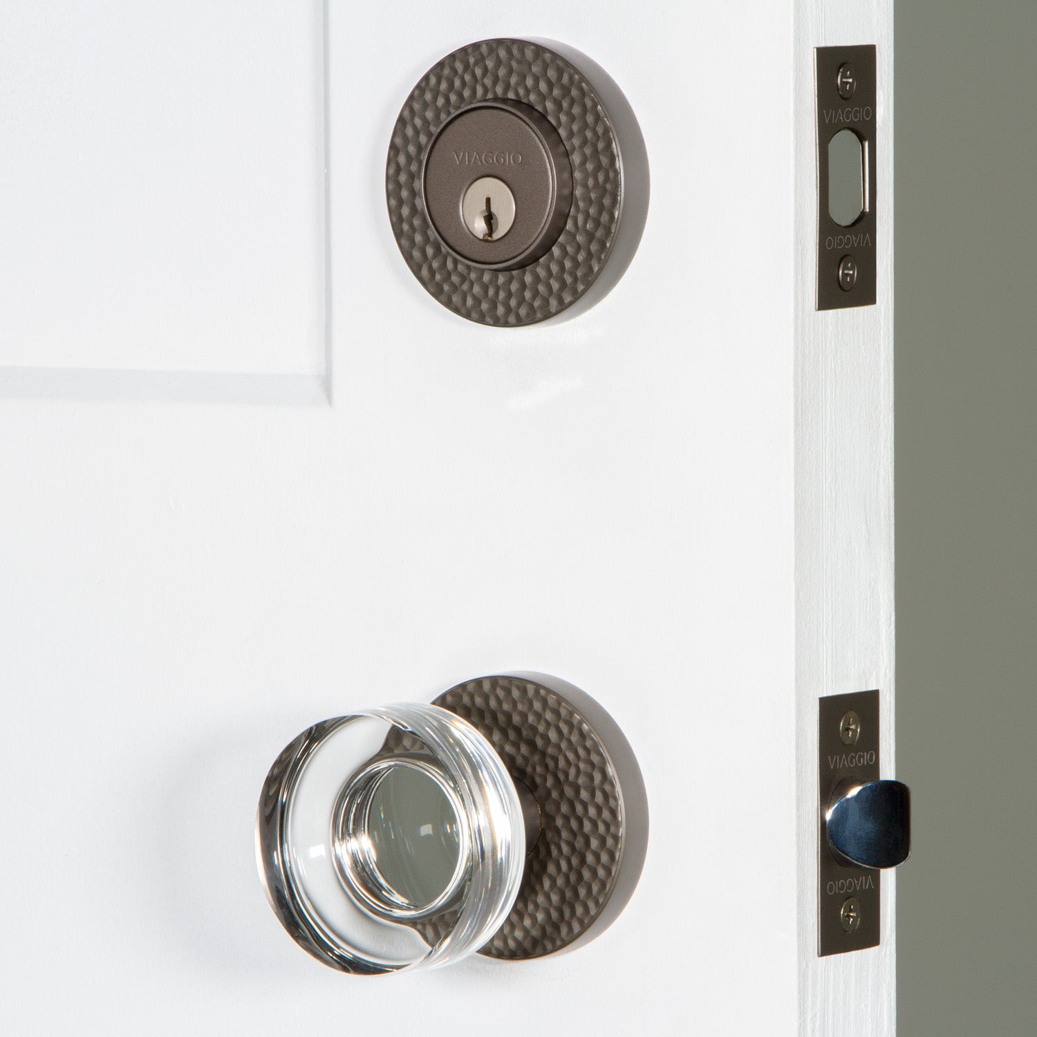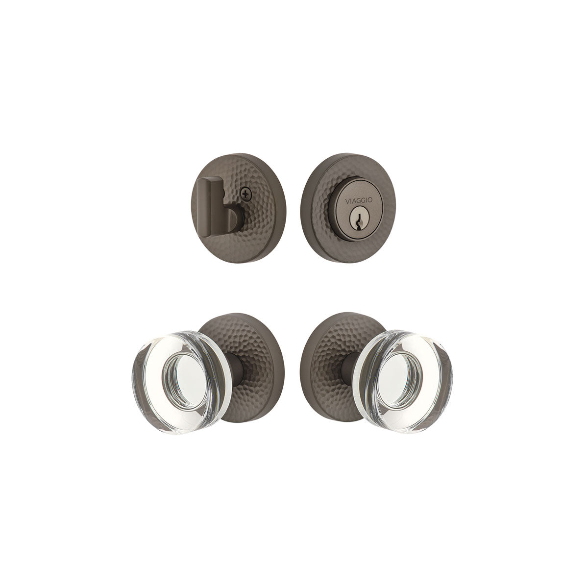 Circolo Hammered Rosette Entry Set with Circolo Crystal Knob in Titanium Gray