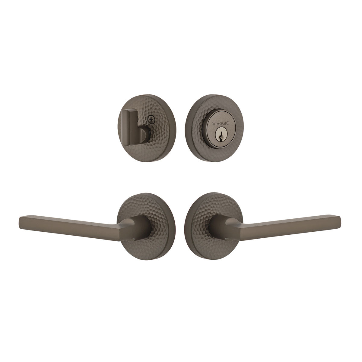Circolo Hammered Rosette Entry Set with Milano Lever in Titanium Gray