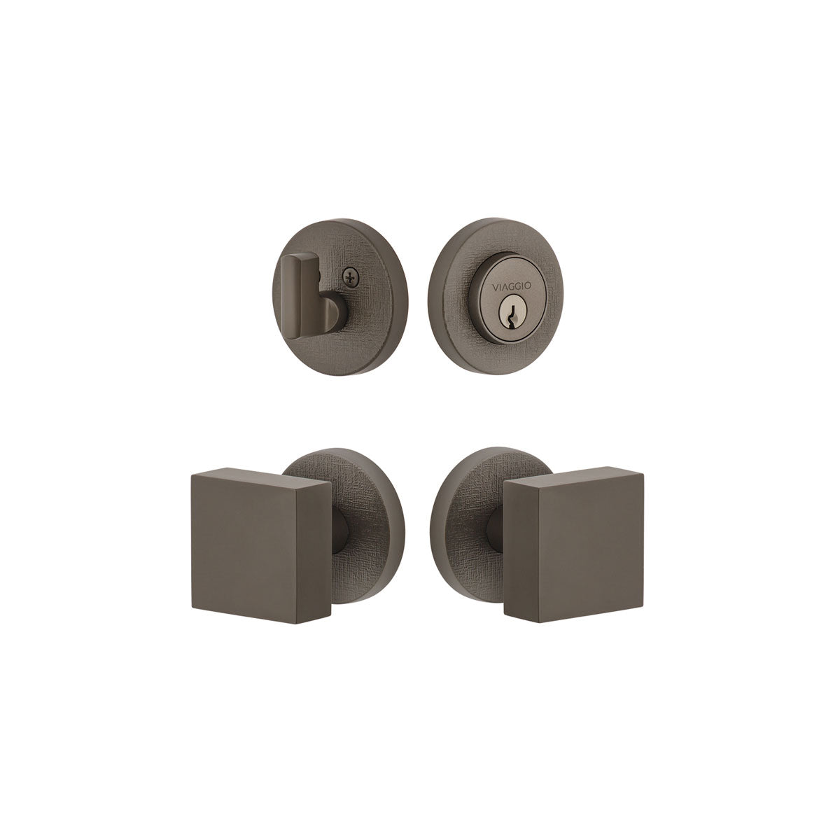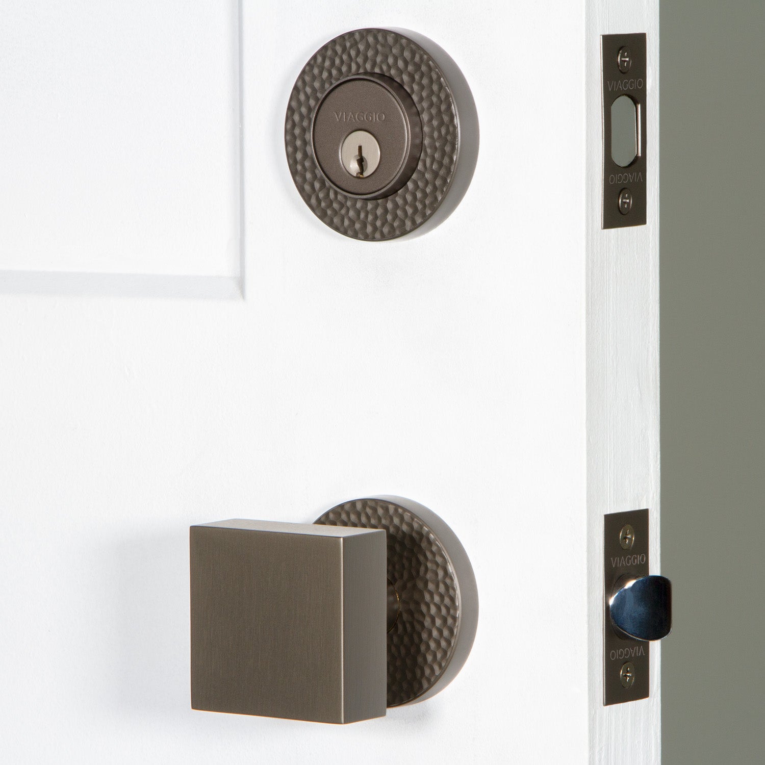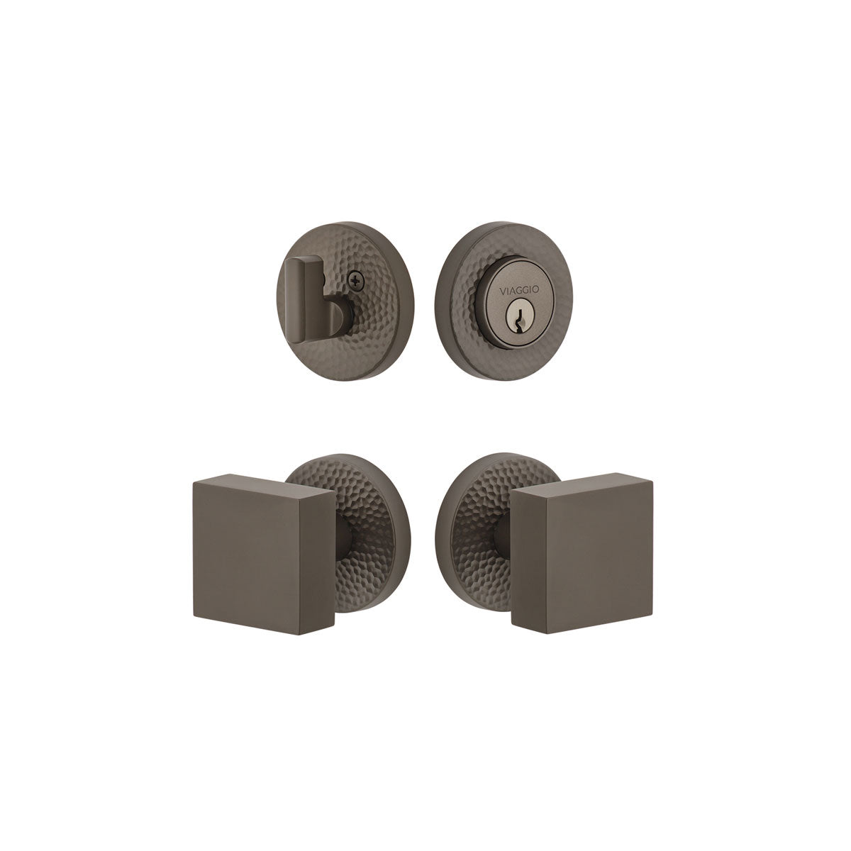 Circolo Hammered Rosette Entry Set with Quadrato Knob in Titanium Gray
