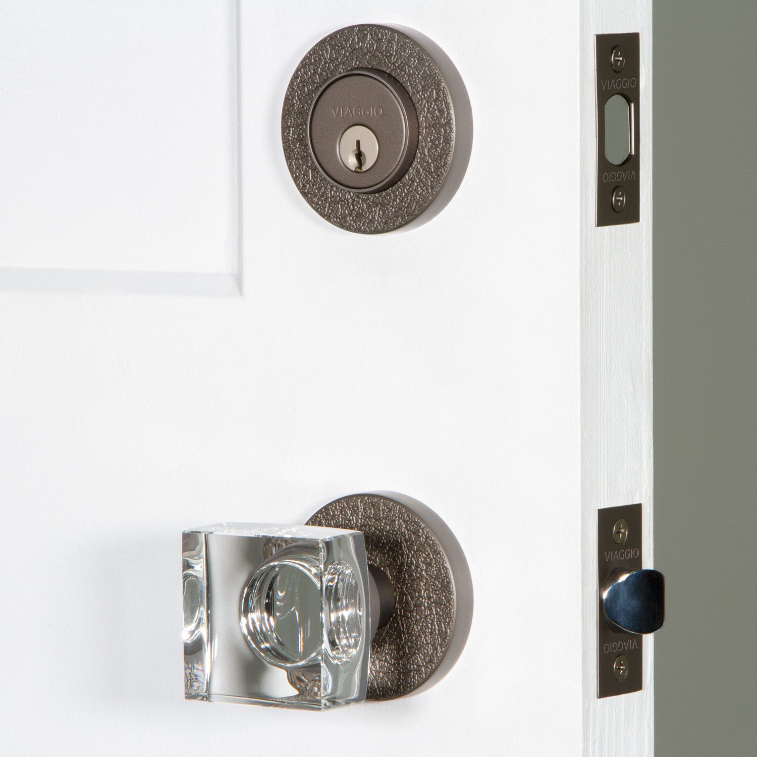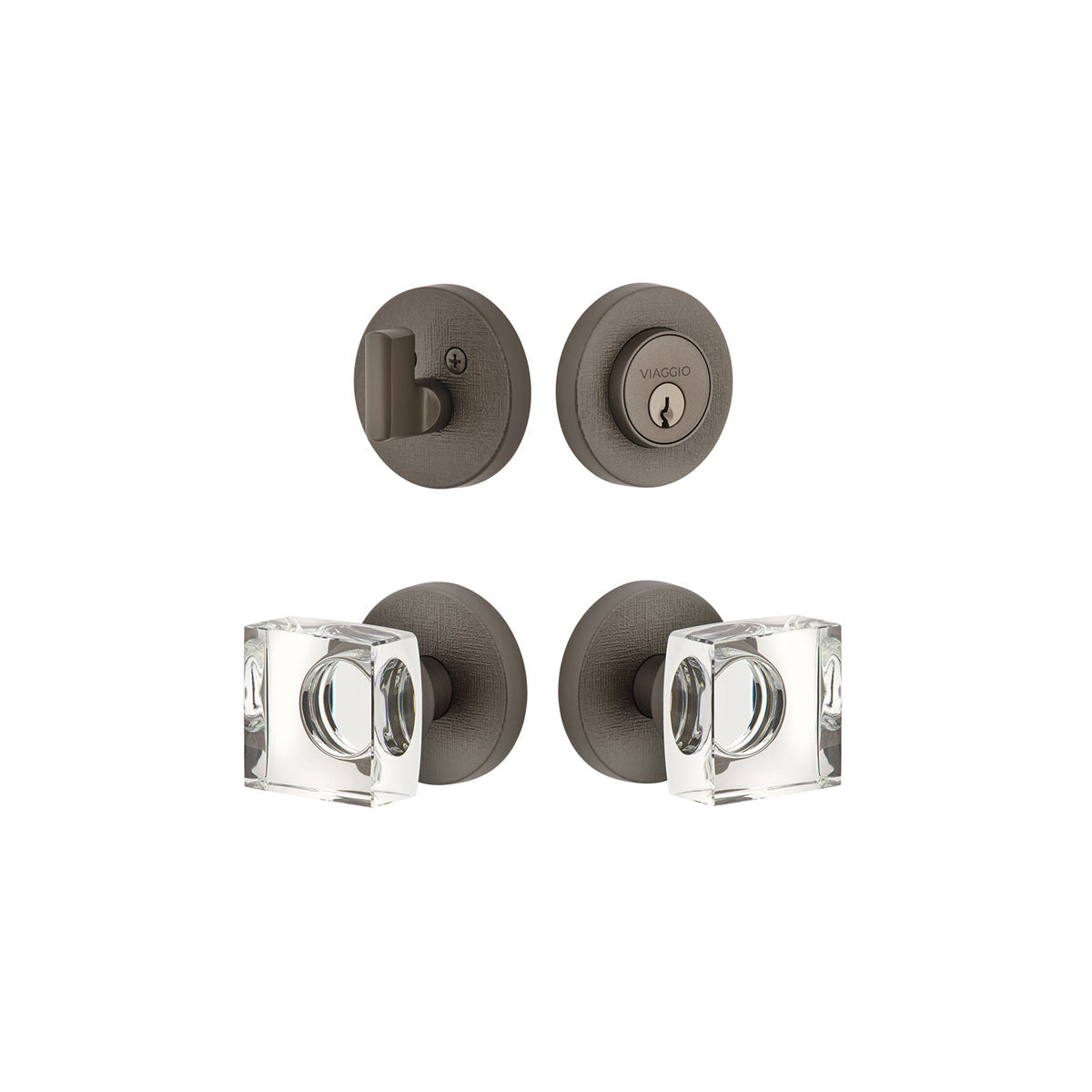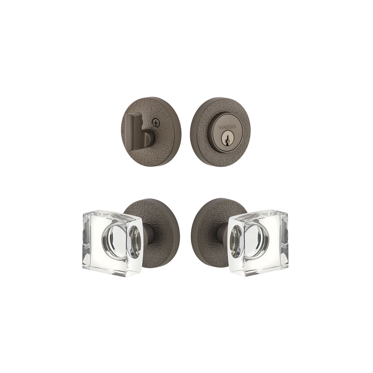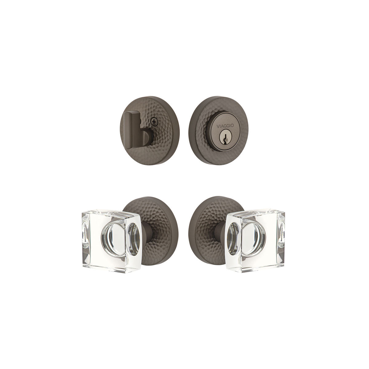 Circolo Hammered Rosette Entry Set with Quadrato Knob in Titanium Gray