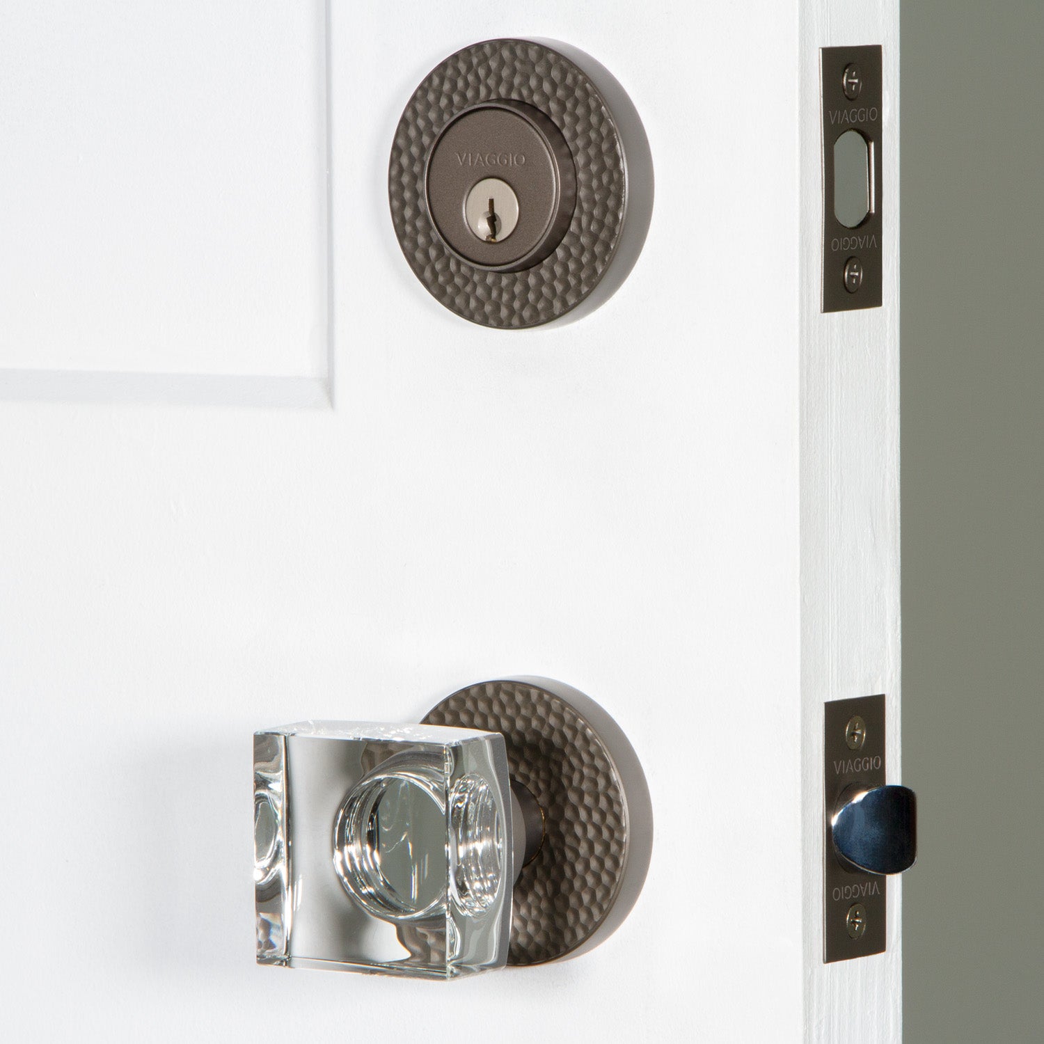Circolo Hammered Rosette Entry Set with Quadrato Crystal Knob in Titanium Gray