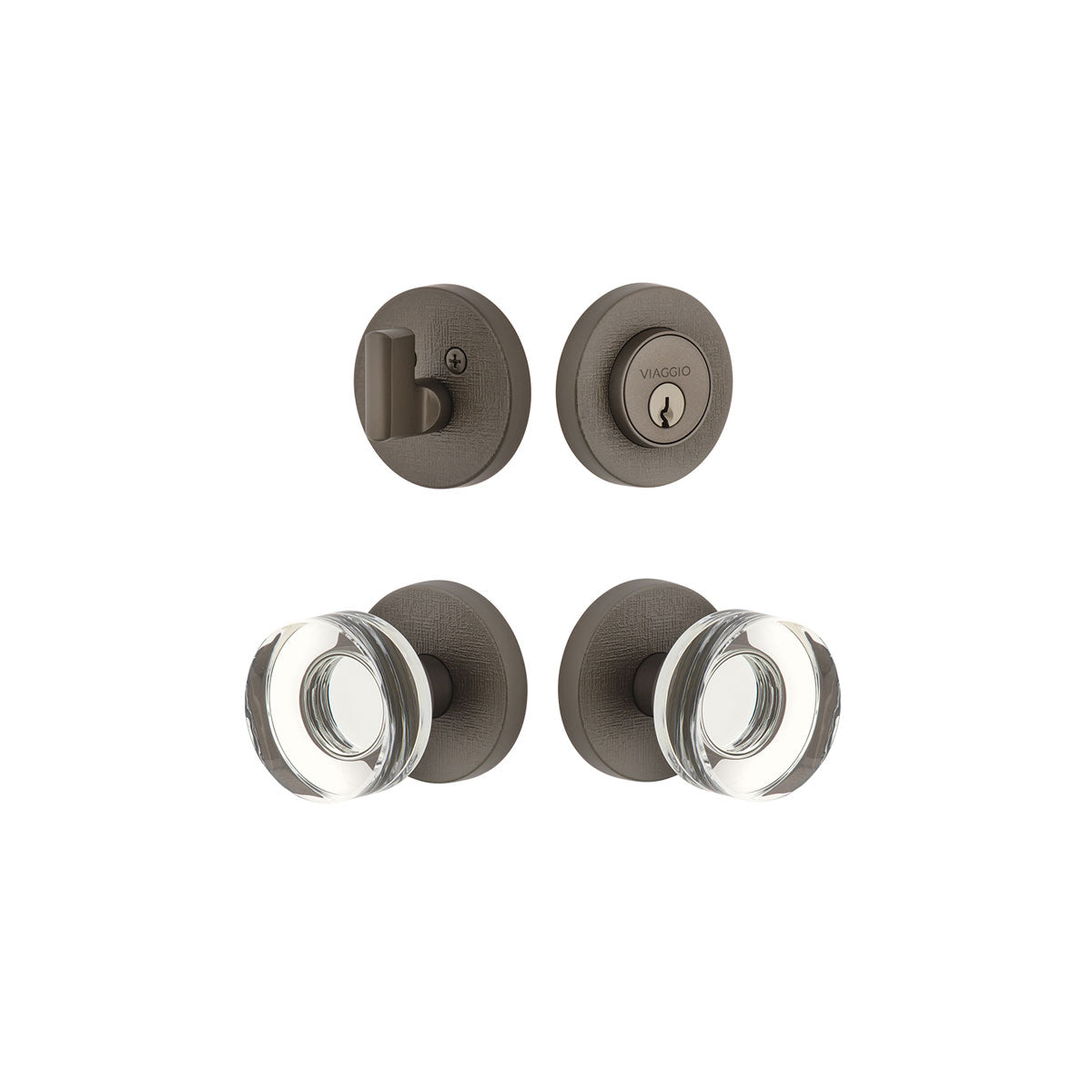 Circolo Linen Rosette Entry Set with Circolo Crystal Knob in Titanium Gray