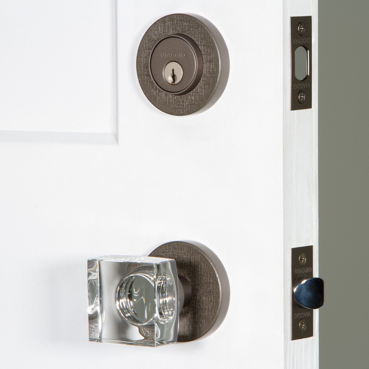 Circolo Linen Rosette Entry Set with Quadrato Crystal Knob in Titanium Gray