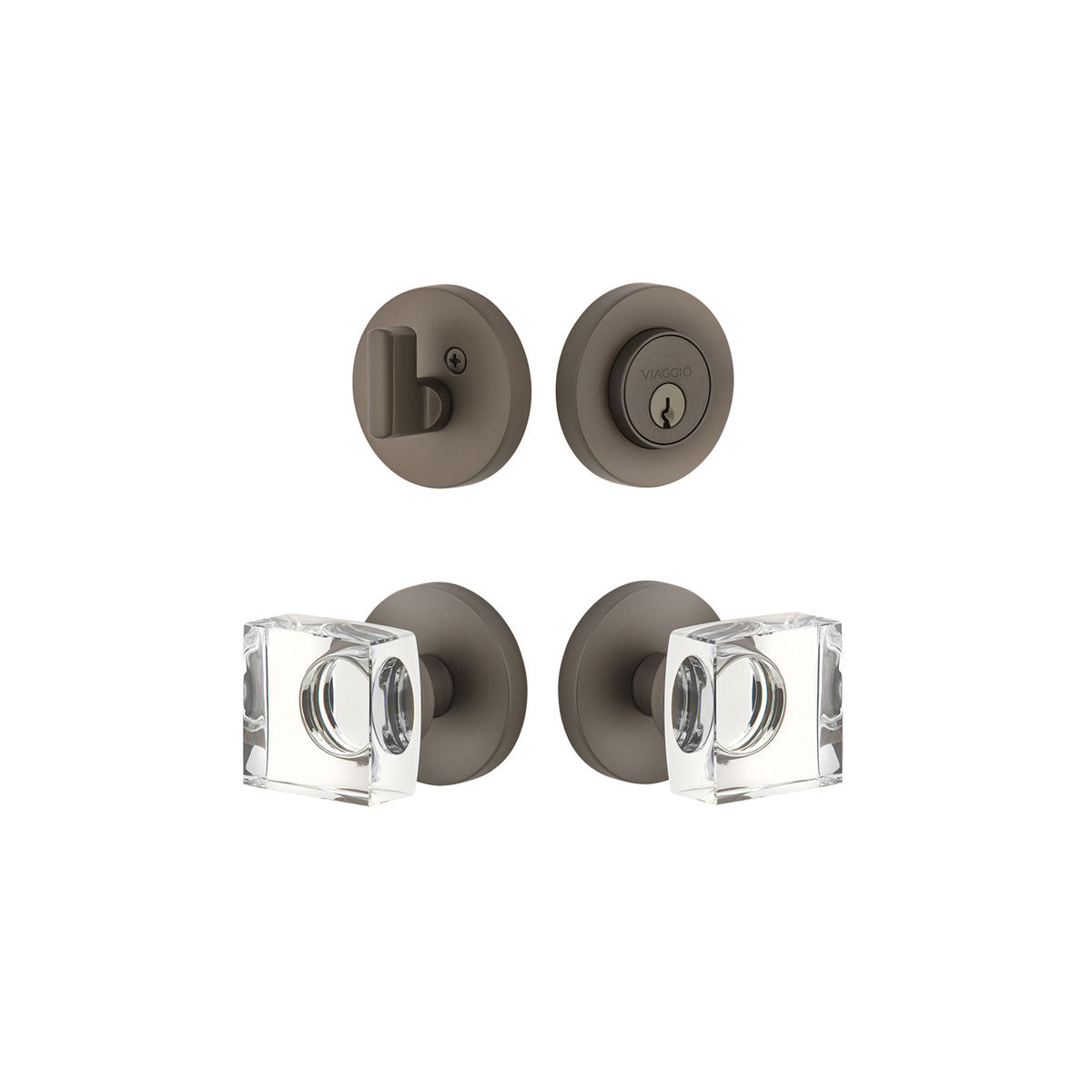 Circolo Rosette Entry Set with Quadrato Crystal Knob in Titanium Gray