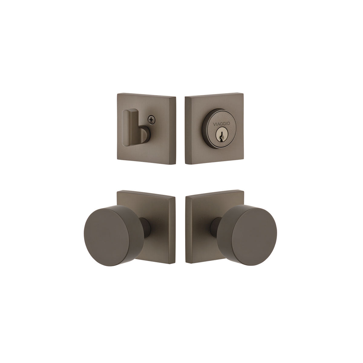 Quadrato Rosette Entry Set with Circolo Knob in Titanium Gray