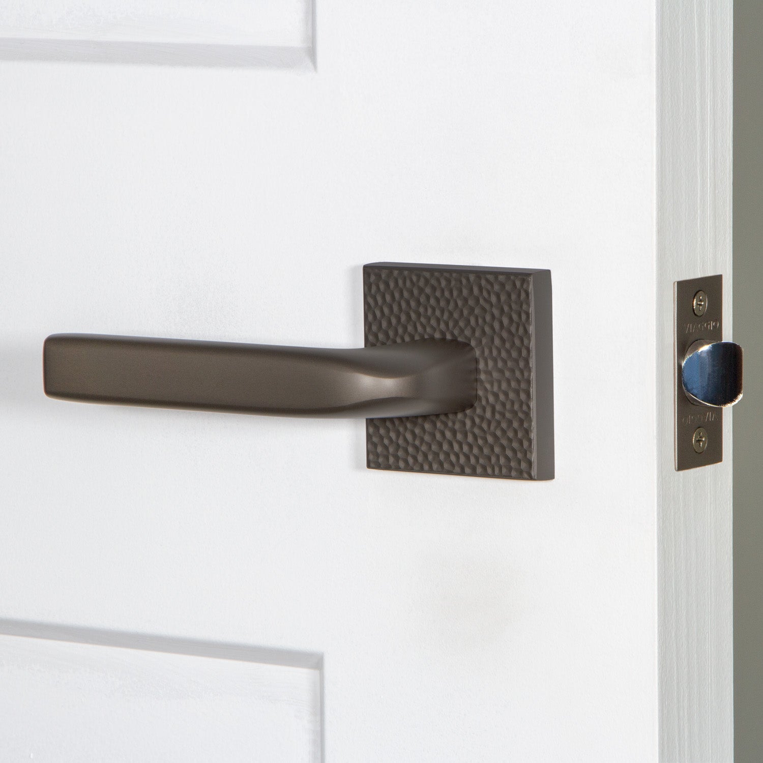 Quadrato Hammered Rosette with Bella Lever in Titanium Gray